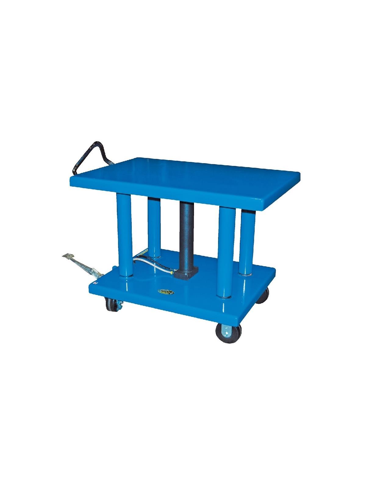 Hydraulic center post lifts tabletop with rigidity. Models with corner posts are telescoping to help stabilize and fully support the load during operation. Rolls smoothly on durable heavy duty casters. FOB Shipping Point.