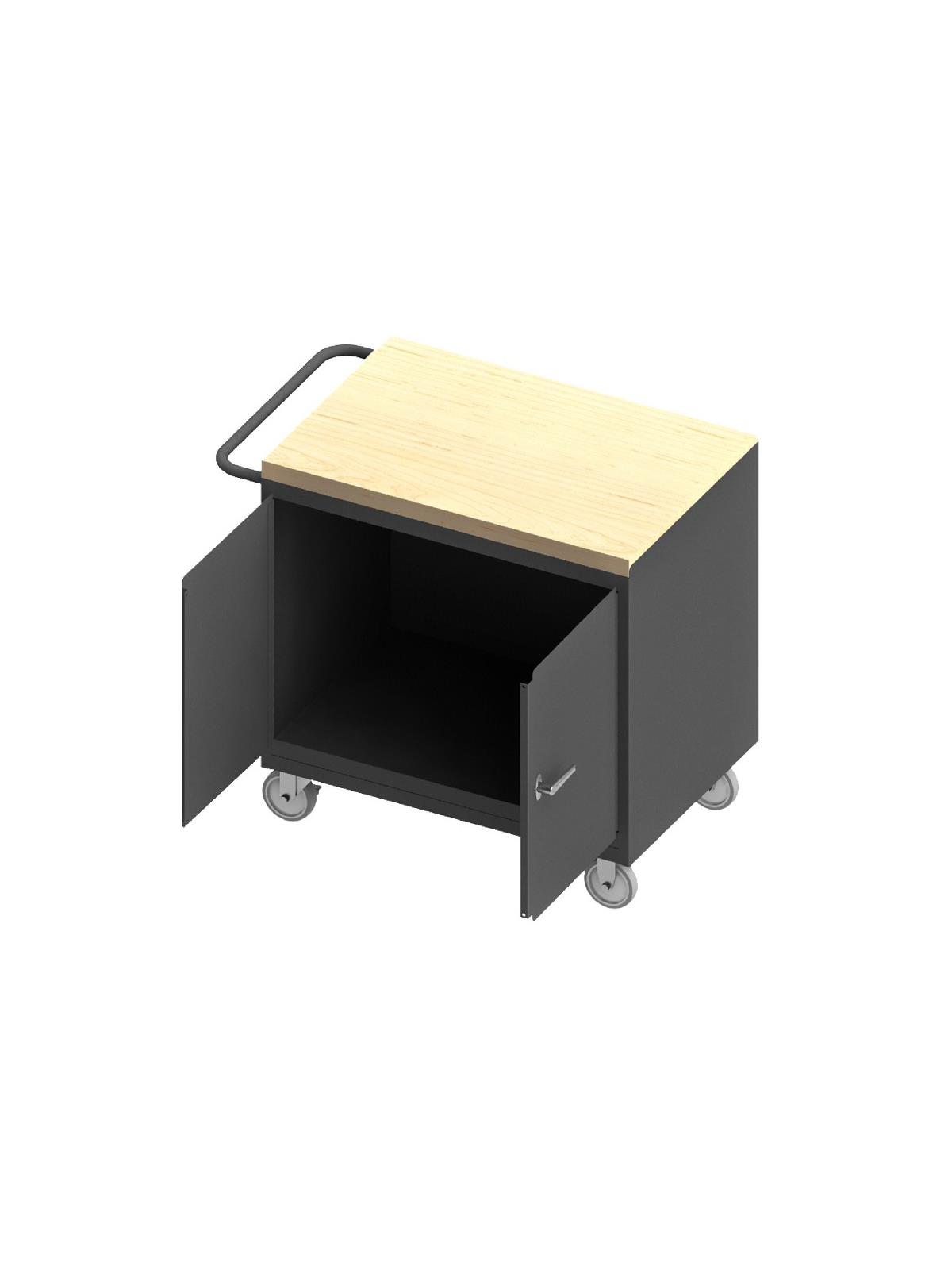 Bench cabinets are constructed of 14 gauge steel. Convenient sturdy work surface with back and end stops on the work surface prevents parts from falling off during transport (MT units not included). Tubular handle for easy maneuverability. Cabinet doors have a 3 point locking system with 4 keys. Rolls smoothly on 5" polyurethane bolt-on casters, (2) swivel with side brakes and (2) rigid. 36"W model has 1,200 lbs. capacity. 48"W model has 2,000 lbs. capacity and includes a floor lock to keep the unit in place while you work. FOB Shipping Point.