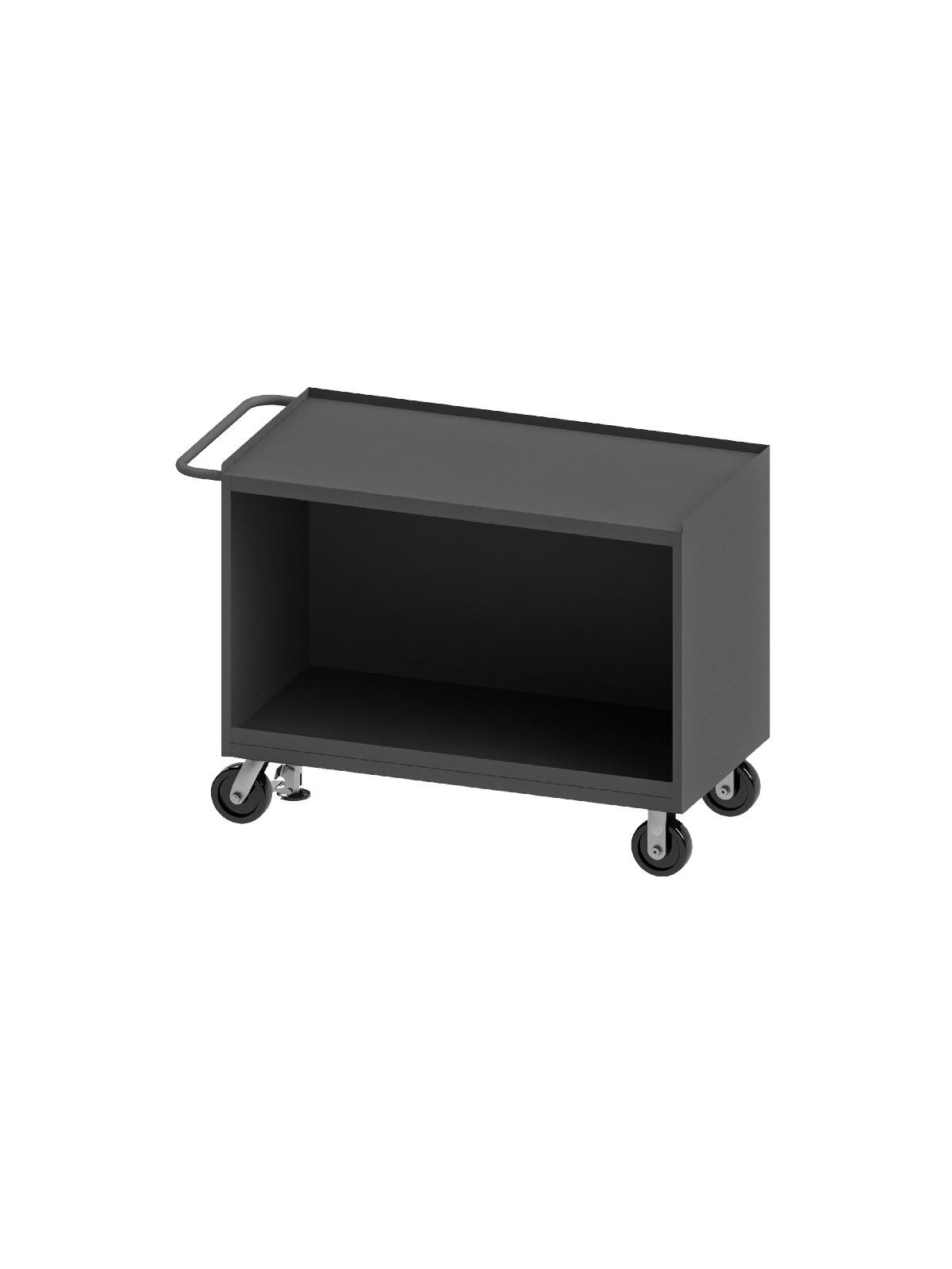 Bench cabinets are constructed of 14 gauge steel. Convenient sturdy work surface with back and end stops on the work surface prevents parts from falling off during transport (MT units not included). Tubular handle for easy maneuverability. Cabinet doors have a 3 point locking system with 4 keys. Rolls smoothly on 5" polyurethane bolt-on casters, (2) swivel with side brakes and (2) rigid. 36"W model has 1,200 lbs. capacity. 48"W model has 2,000 lbs. capacity and includes a floor lock to keep the unit in place while you work. FOB Shipping Point.