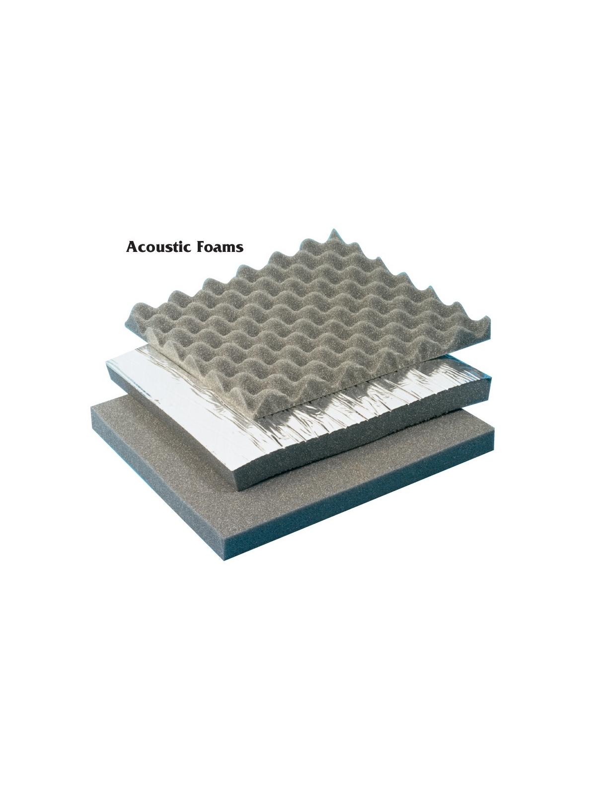 Cut to size and adhere with Sound Stick Adhesive on almost any surface. Available in your choice of Convoluted, Aluminized Mylar Facing or Standard Open-Celled.