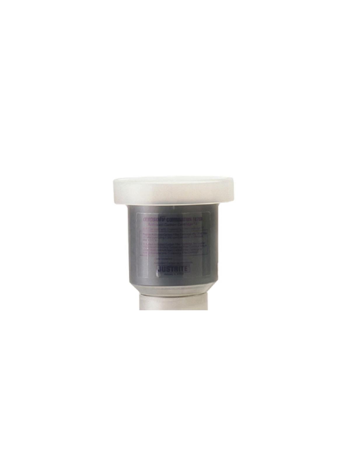 The Aerosolv® system safely converts spent aerosol cans from solid hazardous waste to a non-hazardous material. It accepts industry standard sized cans with a maximum height of 8-1/2 inch (215-mm) and threads directly into a standard 2" (51-mm) bung on a 30 (110-liter) or 55-gallon (200-liter) drum. Body is made of low maintenance aluminum and all moving parts are 308 stainless steel. A non-sparking pin punctures the can and the residual liquids flow into the collection drum. One 55-gallon (200-liter) drum holds approximately 4,200 spent aerosol cans. Attach the two-part combination filter to the 3/4" (19-mm) bung to filter VOCs from any residual propellants. The bottom coalescing cartridge transforms residual liquids into droplets that collect in the reservoir of the cartridge and safely drain into the drum. The top activated carbon filter cartridge indicates saturation and serves as a replacement reminder. Economical, non color-changing filter is also available. System includes a combination filter, safety goggles, and an anti-static ground wire with alligator clip. EPA compliant. FOB Shipping Point.