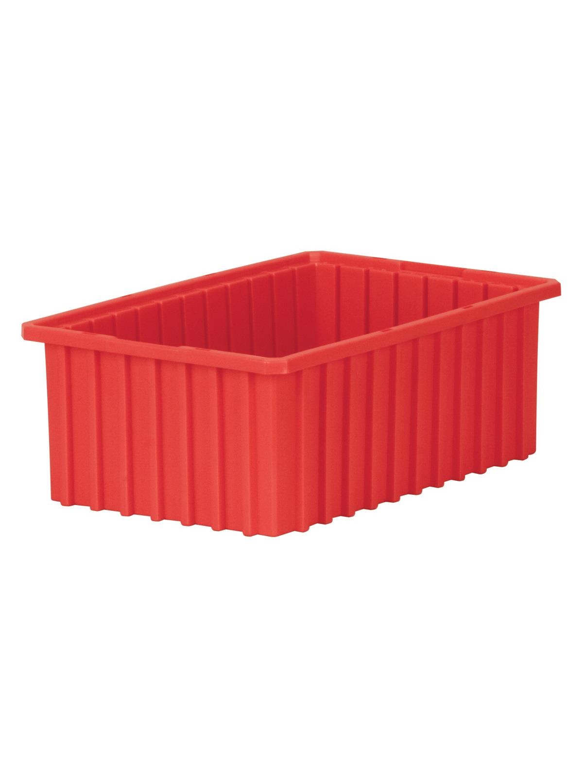 Intersecting dividers allow the container to be subdivided in separate compartments as small as 1-1/8" sq. Injection-molded from high density polyethylene -- resists most solvents and chemicals. Compatible with most racks, shelving and automated material handling equipment. Available in Red, Blue, or Gray. Dividers and lids sold separately. FOB Shipping Point.