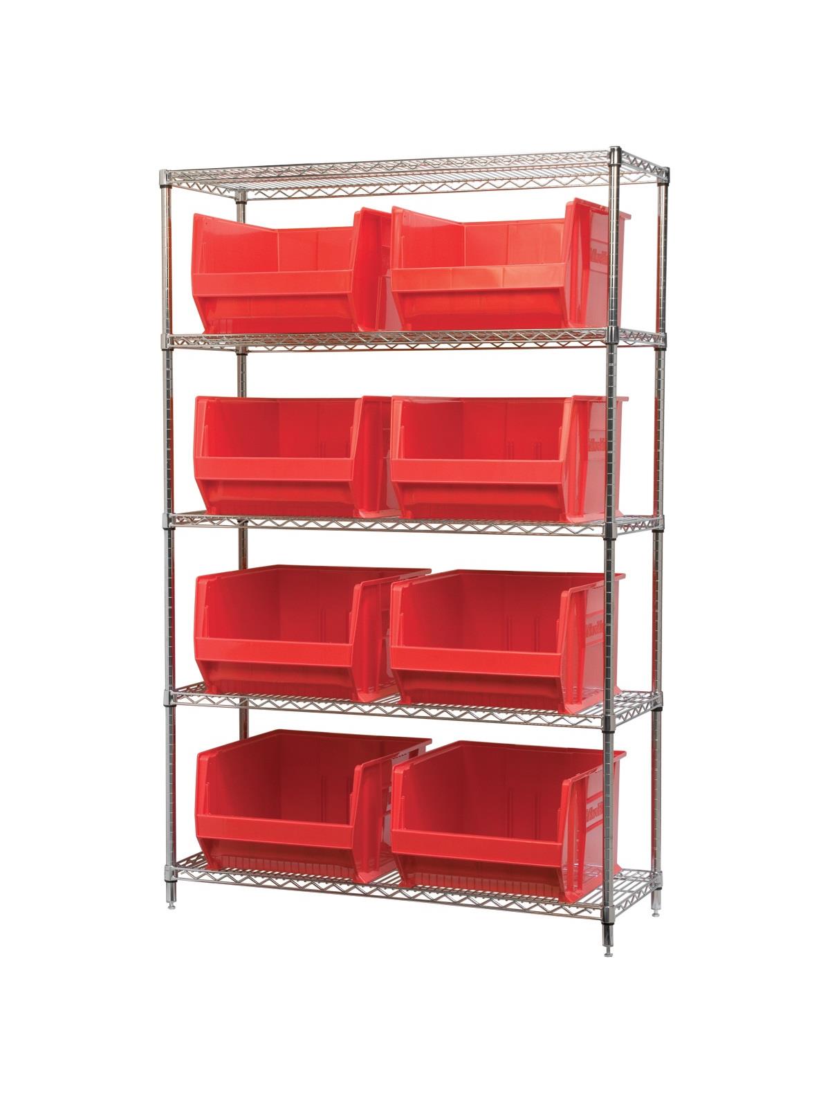 A wide variety of shelf configurations are possible with three sizes of shelving available. Durable AkroBins® feature a curved bottom hopper front, to enable easy access of small parts. Bins available in Blue, Red, Yellow, Stone, Green, or Semi-Clear. FOB Shipping Point.