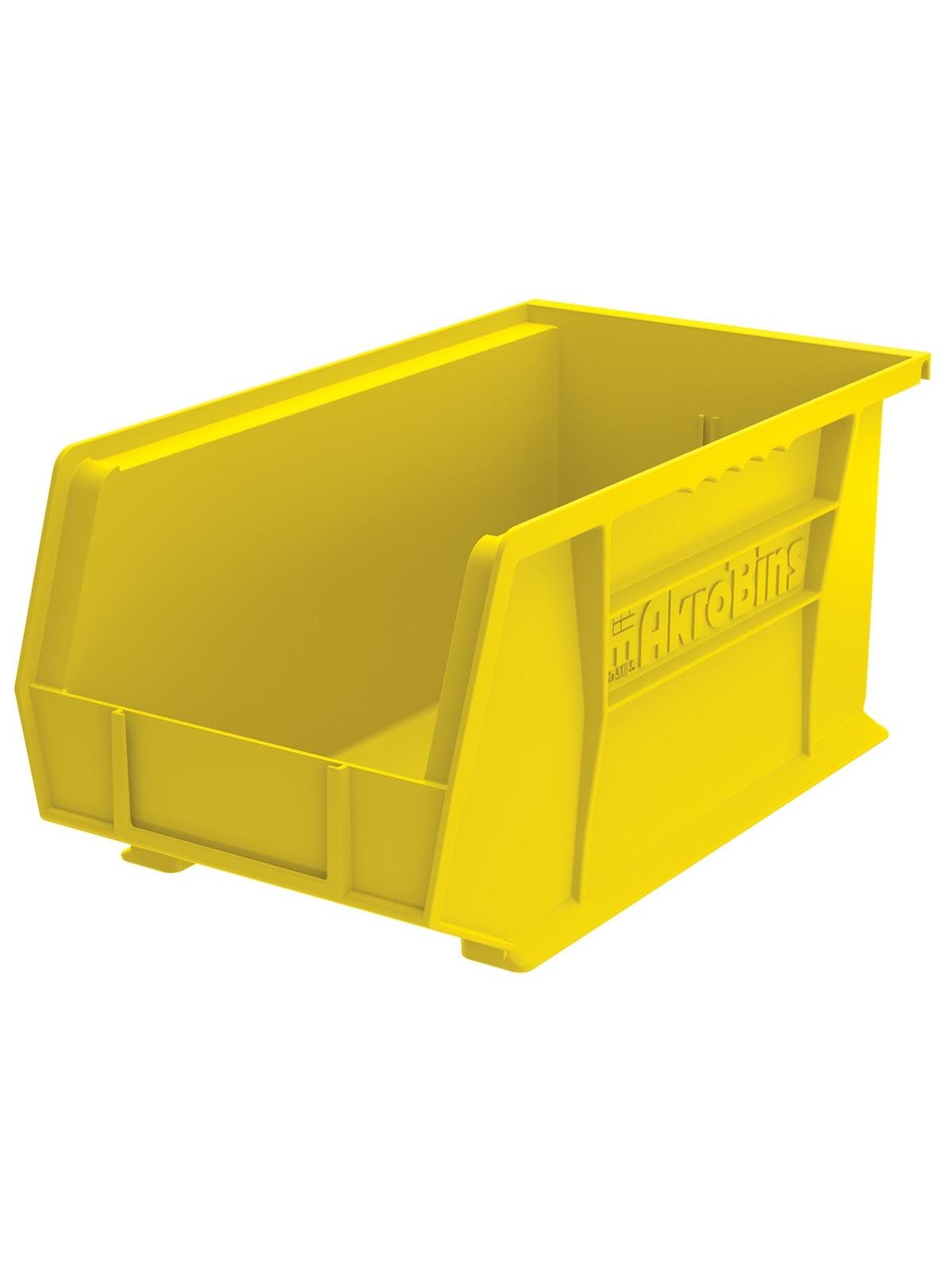 AkroBins are heavy-duty and securely stack on top of each other, sit on shelving, and hang from Akro-Mils racks, panels, rails and carts. Unaffected by weak acids and alkalis the sturdy one piece construction is water, rust and corrosion-proof. Finger grip allows for easy handling. Large label slot for easy identification of contents. Autoclavable up to 250° F. Guaranteed not to crack or break under normal load conditions as stated in the 1-year limited warranty. Optional dividers and labels available, see Related Items tab. AkroBins available in Red, Yellow, Blue, Green, Black, Stone, and Semi-Clear. FOB Shipping Point.