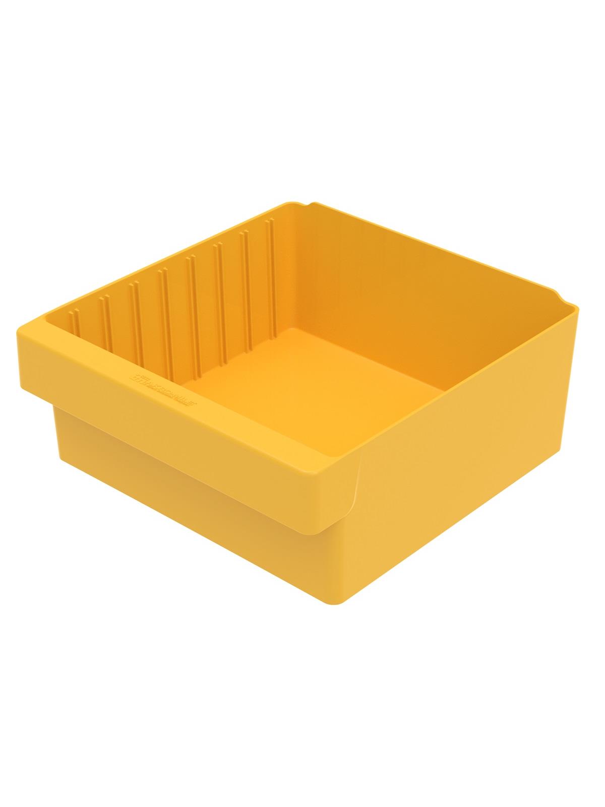 Offered in 12" or 18" depths to work with compatible shelving. Easy to label and color code inventory for quick identification of parts and supplies. Drawers can be stacked to optimize space. Wide front handle for easy gripping when AkroDrawers are loaded or contain heavy contents. Can be used with available shelving, racks, mobile carts or can be used by themselves. Sturdy back stop tab ensures AkroDrawers can hang securely from shelves. Dividers are available to keep contents neatly separated in drawers. Available in Blue, Gray, Yellow, Red and Clear - Minimum order required. FOB Shipping Point.
