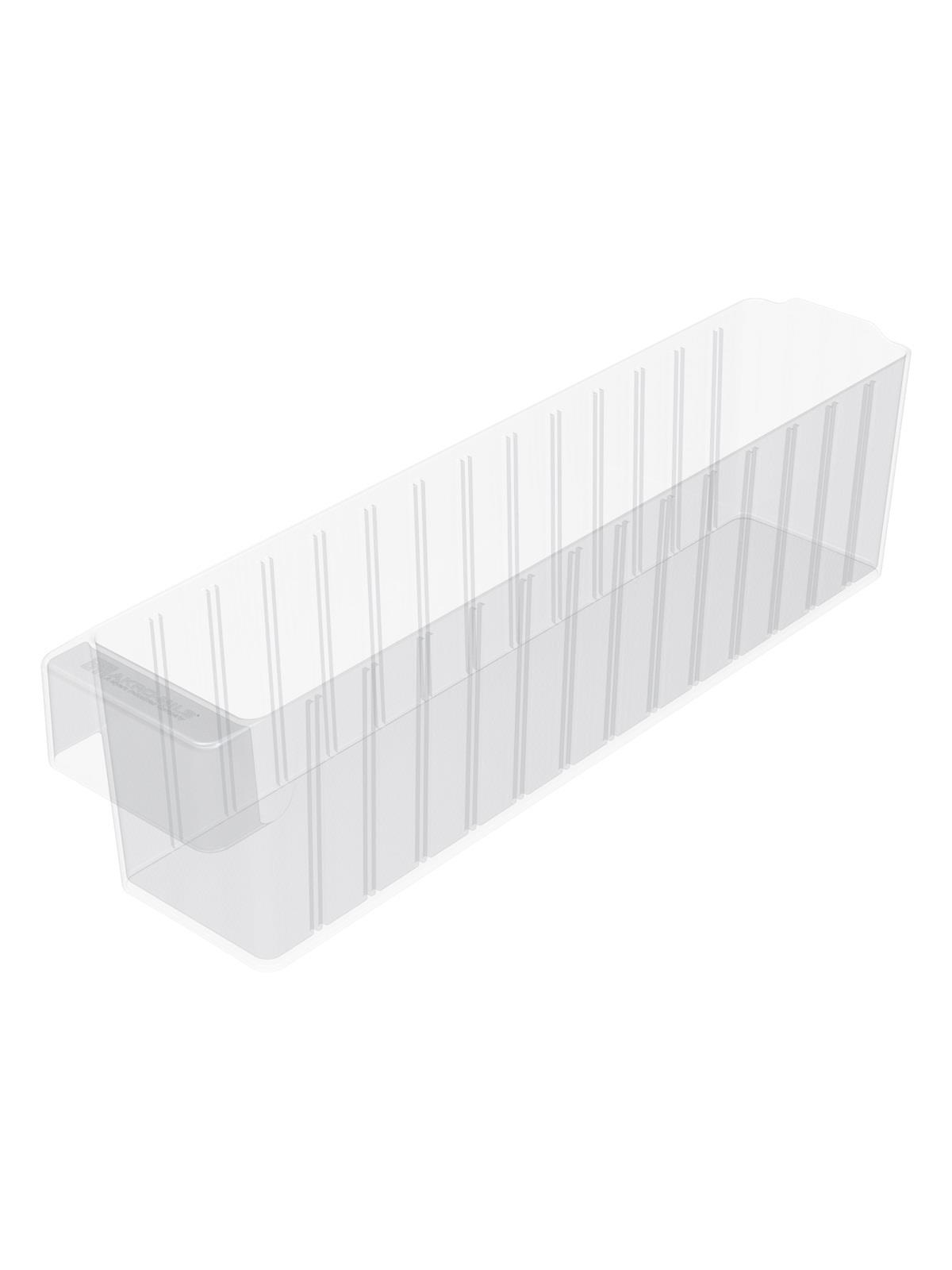 Offered in 12" or 18" depths to work with compatible shelving. Easy to label and color code inventory for quick identification of parts and supplies. Drawers can be stacked to optimize space. Wide front handle for easy gripping when AkroDrawers are loaded or contain heavy contents. Can be used with available shelving, racks, mobile carts or can be used by themselves. Sturdy back stop tab ensures AkroDrawers can hang securely from shelves. Dividers are available to keep contents neatly separated in drawers. Available in Blue, Gray, Yellow, Red and Clear - Minimum order required. FOB Shipping Point.