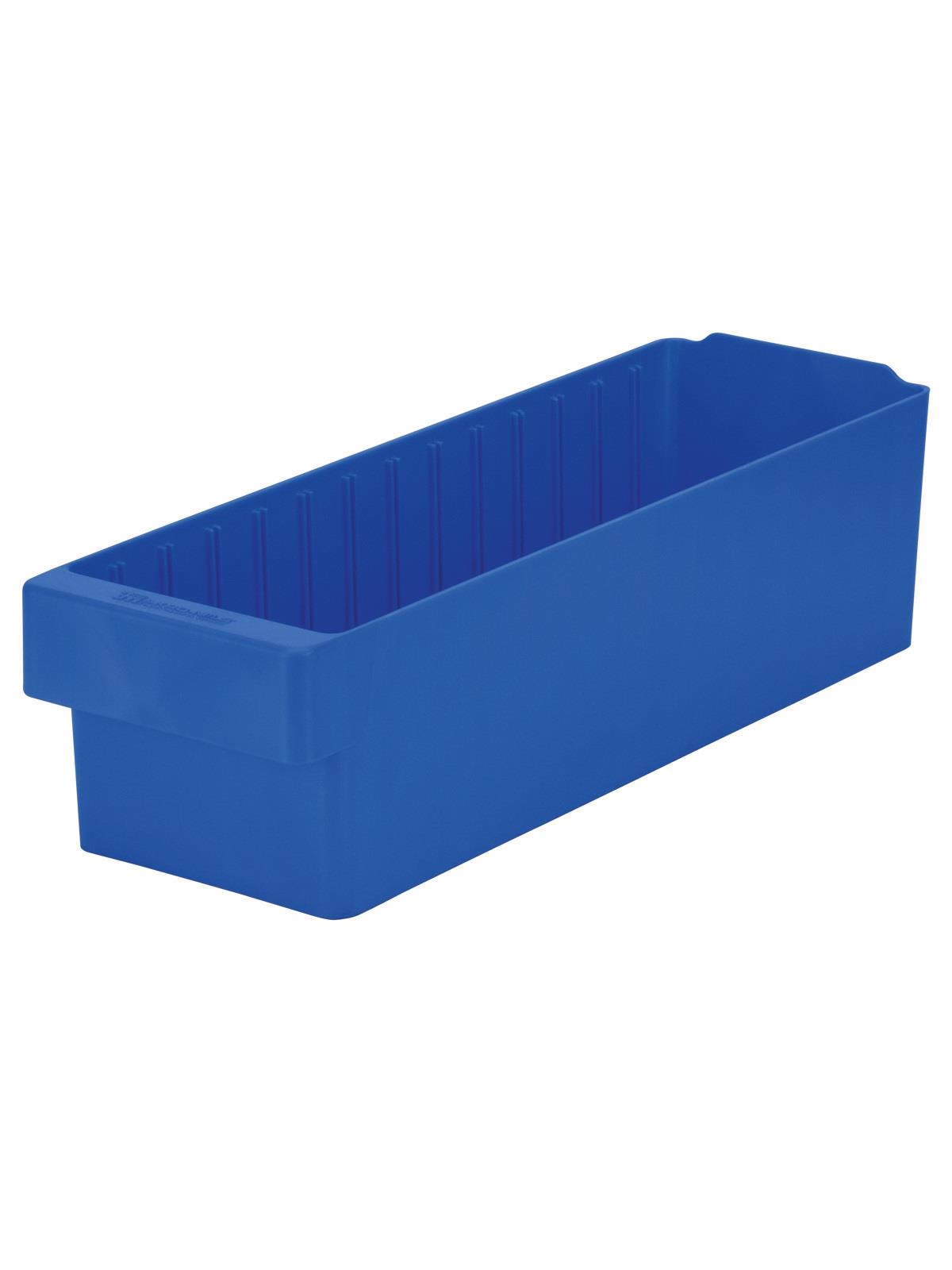 Offered in 12" or 18" depths to work with compatible shelving. Easy to label and color code inventory for quick identification of parts and supplies. Drawers can be stacked to optimize space. Wide front handle for easy gripping when AkroDrawers are loaded or contain heavy contents. Can be used with available shelving, racks, mobile carts or can be used by themselves. Sturdy back stop tab ensures AkroDrawers can hang securely from shelves. Dividers are available to keep contents neatly separated in drawers. Available in Blue, Gray, Yellow, Red and Clear - Minimum order required. FOB Shipping Point.