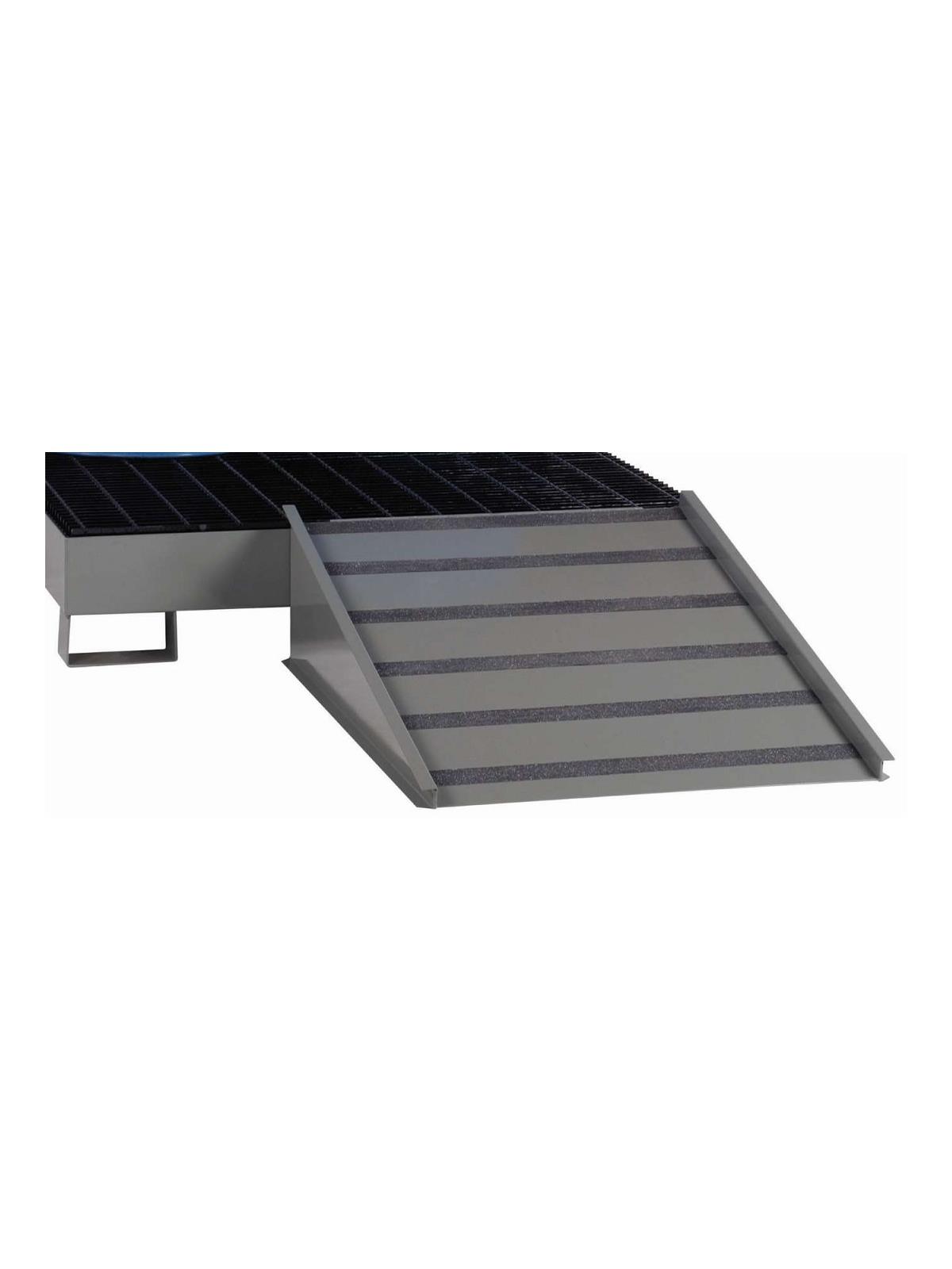 Heavy gauge steel construction for storage of materials that are not compatible with plastic. Sumps and ramps have durable powder coated finish. Welded bar grating can be removed for cleaning. Fork Liftable Ramp optional. FOB Shipping Point.