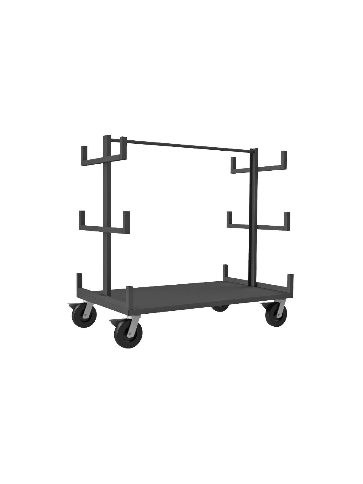 Store or transport bars, pipes, conduit and more easily. Ships fully assembled and ready for use. Deck height measures 11-1/8" above the floor. Rolls on 8 x 2" phenolic casters. Gray, textured, powder coat finish. FOB Shipping Point.