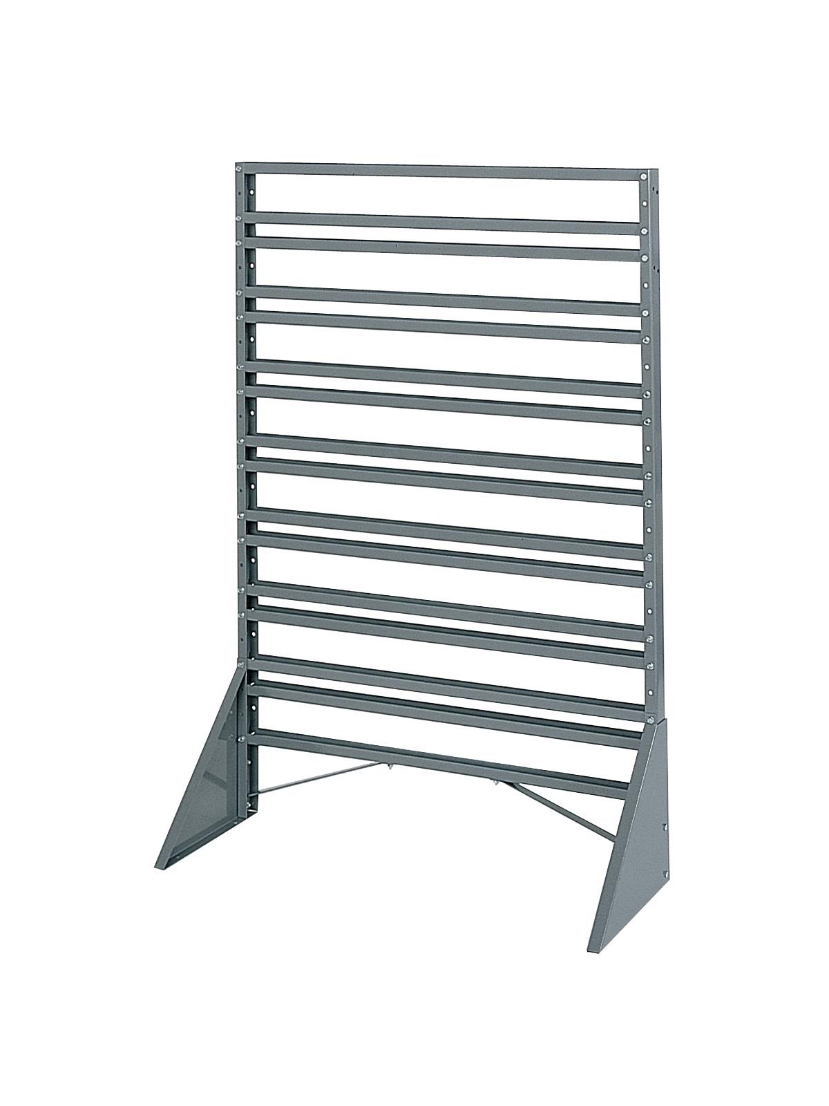Panels are available in 18" x 36" widths. Two louvered racks available. Two bench racks available that support 120 lbs. Free standing floor rack supports 2000 lbs. Ships by truck. FOB Shipping Point.