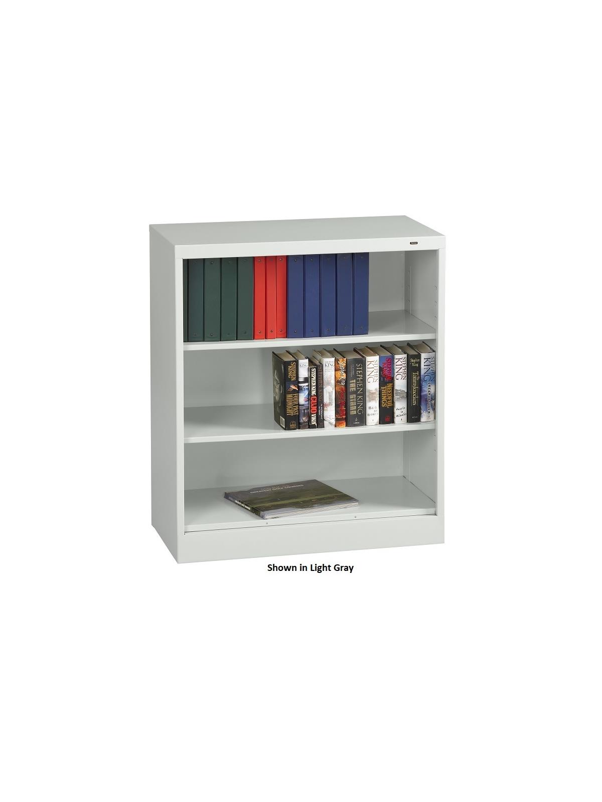 Choose the bookcase depth that best meets your needs - 13-1/2" or 18". Deeper units can also be used as a cabinet without doors to store things other than books and binders. Durable, strong units feature welded construction with clean lines so side-to-side units fit flush together. Raised base provides protection for materials on bottom shelf.