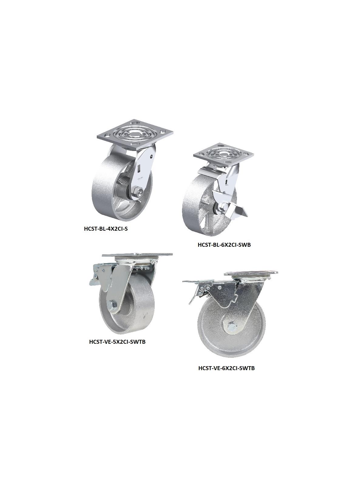 HCST-BL-8X2CI-SWB Swivel Caster with Brake 8" x 2" 1250 9-1-2" 4" x 4-1/2" 14 $145.25