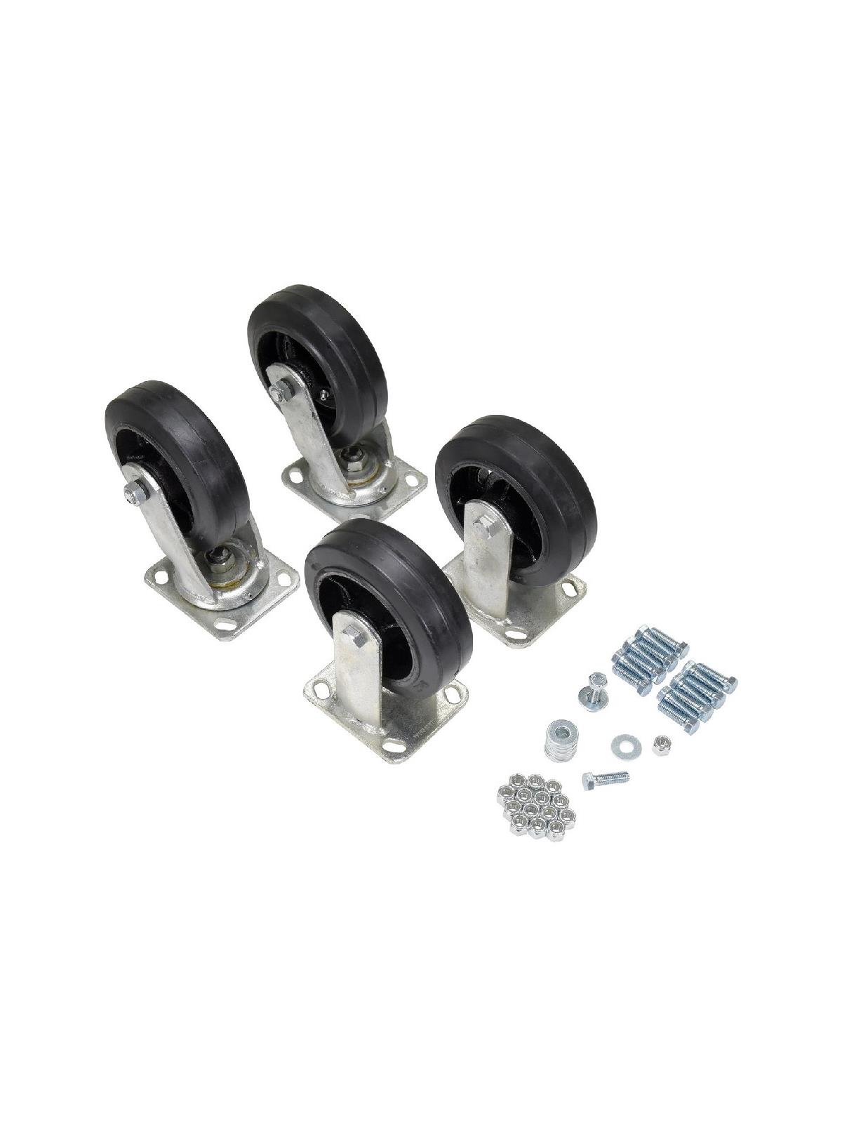 For use with Bumper Release Steel Hoppers. Transport loads with portable hoppers. The maximum weight capacity is the lowest weight capacity of either the hopper or the caster. Casters are shipped uninstalled to prevent freight damage. Sets include (2) rigid, and (2) swivel casters. Casters are bolted-on by utilizing the factory stamped hole in the fork tubes. FOB Shipping Point.