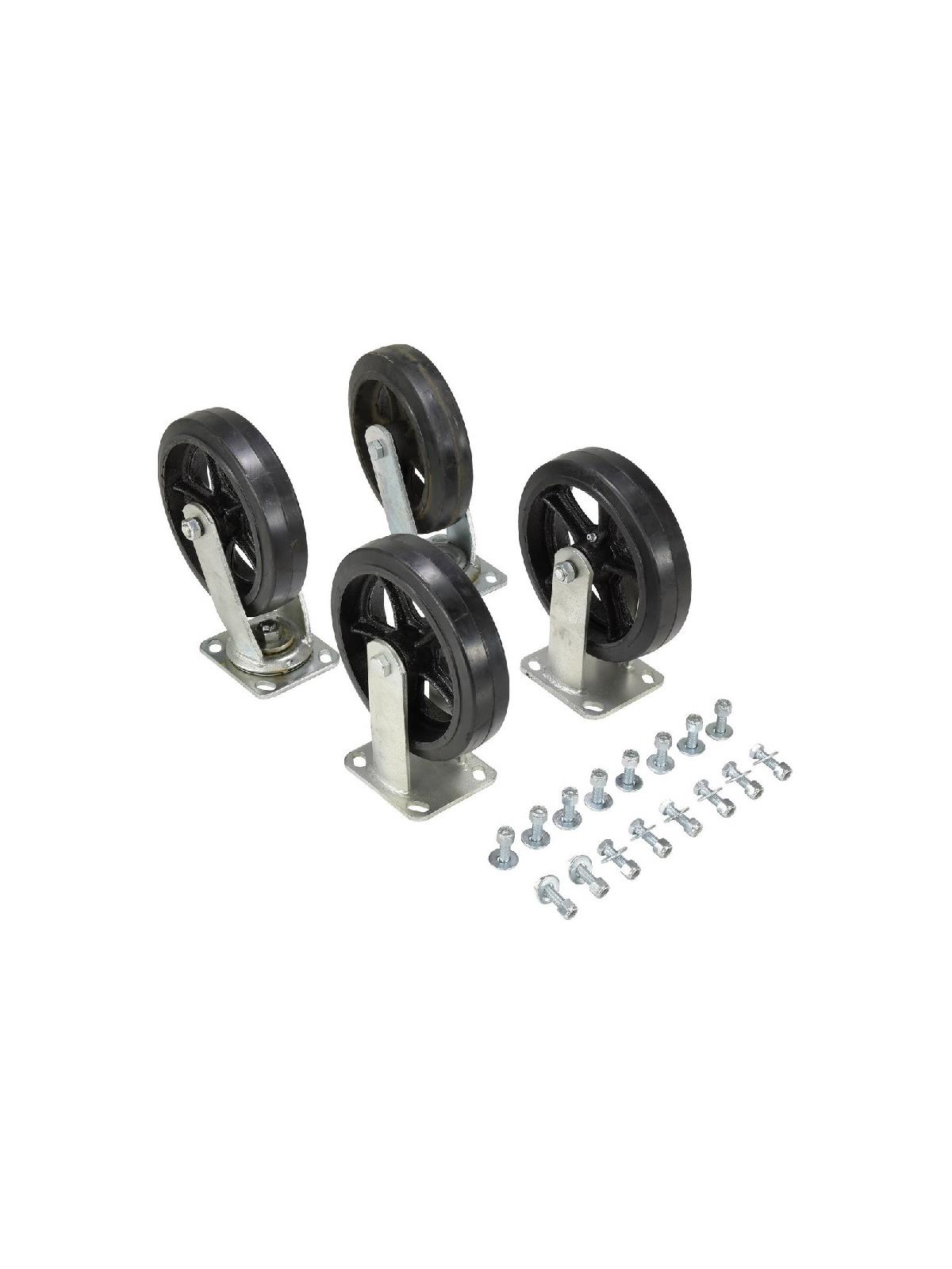 For use with Bumper Release Steel Hoppers. Transport loads with portable hoppers. The maximum weight capacity is the lowest weight capacity of either the hopper or the caster. Casters are shipped uninstalled to prevent freight damage. Sets include (2) rigid, and (2) swivel casters. Casters are bolted-on by utilizing the factory stamped hole in the fork tubes. FOB Shipping Point.