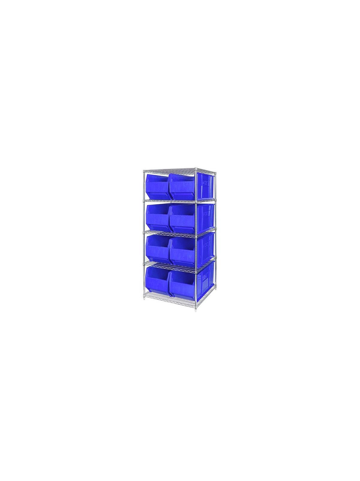 Combine stylish chrome shelving and parts organizing bins. Sturdy shelving unit supports loads up to 800 lbs. Choice of bins. Easy to assemble. Hulk Containers are available in Blue, Red and Yellow. FOB Shipping Point.