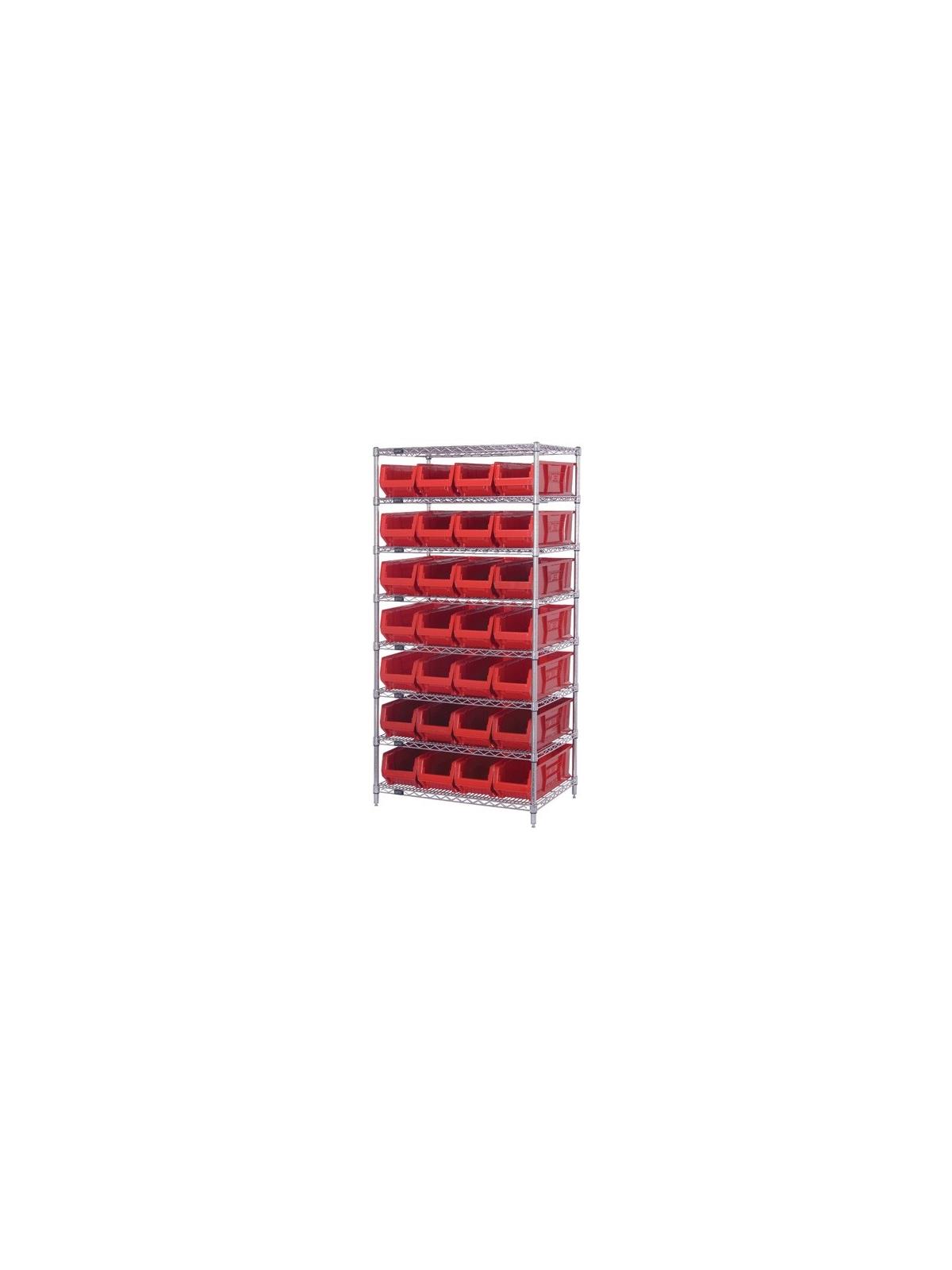 Combine stylish chrome shelving and parts organizing bins. Sturdy shelving unit supports loads up to 800 lbs. Choice of bins. Easy to assemble. Hulk Containers are available in Blue, Red and Yellow. FOB Shipping Point.