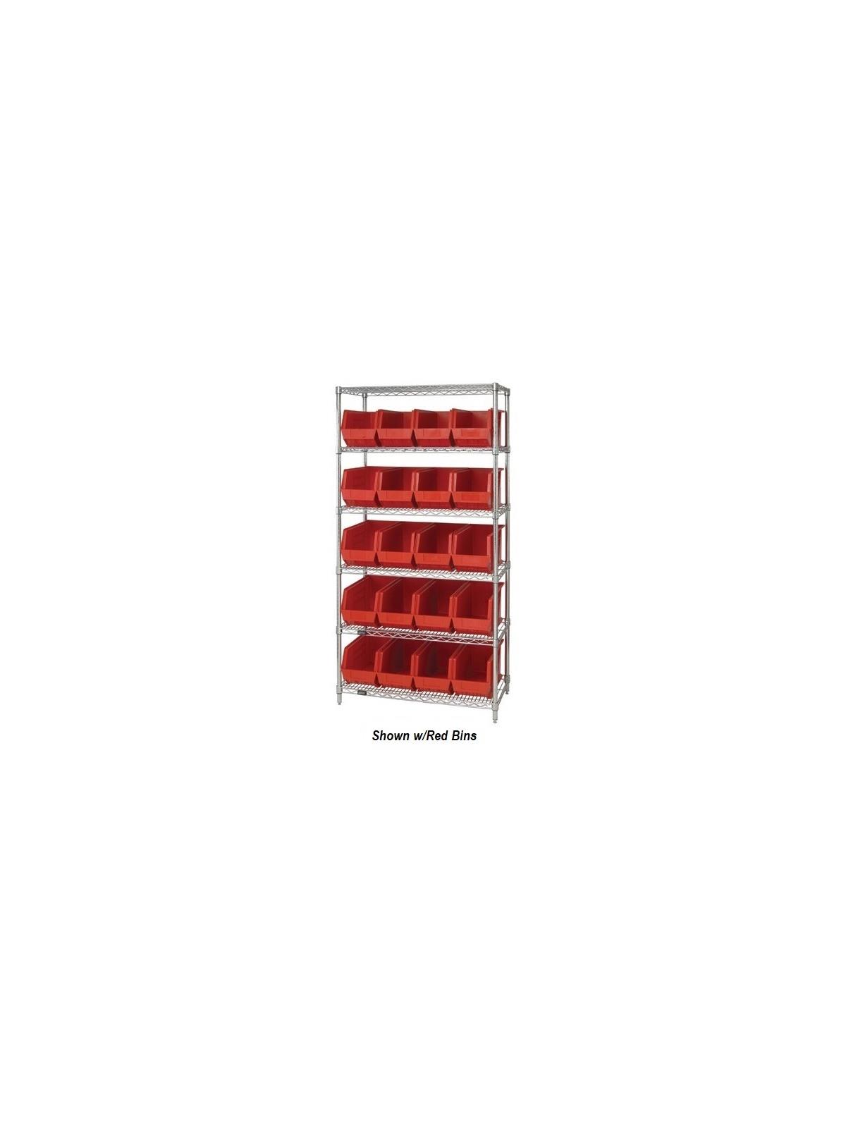 Combine stylish chrome shelving and parts organizing bins. Sturdy shelving unit supports loads up to 800 lbs. Choice of bins. Easy to assemble. Ultra Bins are available in Blue, Red, Yellow, Green, Ivory or Black. FOB Shipping Point.