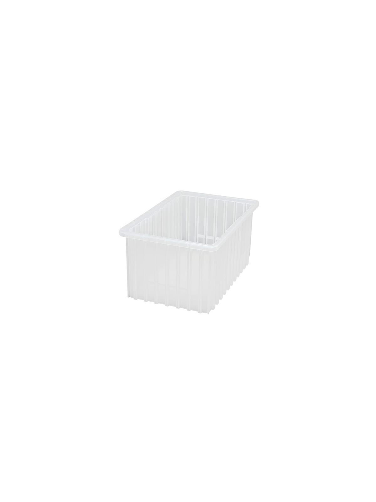 Can be used in industrial, commercial, electronic and health care industries for storage, assembly, fabrication and distribution applications. Compatible with most racks, shelving and automated, material handling equipment. Stacking rims and multi-ribbed external sides provide high impact strength. Large, smooth surface area on all four sides for content identification. Molded-in stacking ridge assures containers will stack securely with or without covers (covers sold separately). Available in Blue, Red, Gray or Clear. FOB Shipping Point.