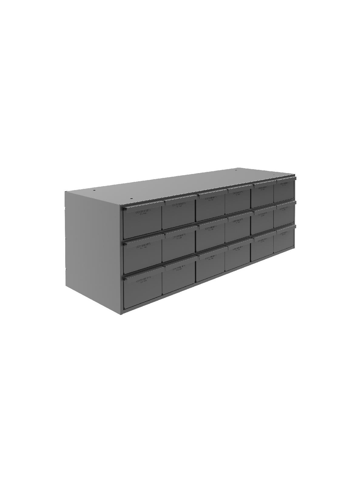All-welded heavy-duty frame features vertical support for extra stacking strength. A positive stop mechanism prevents drawers from falling out. Drawers also feature double interlocked design for additional rigidity. Full-width handles for a firm grip. Each drawer complete with 2 adjustable dividers. Extra dividers sold below. Fits standard shelving. Finished in rust and acid resistant Gray powder coat. Fully assembled. FOB Shipping Point.
