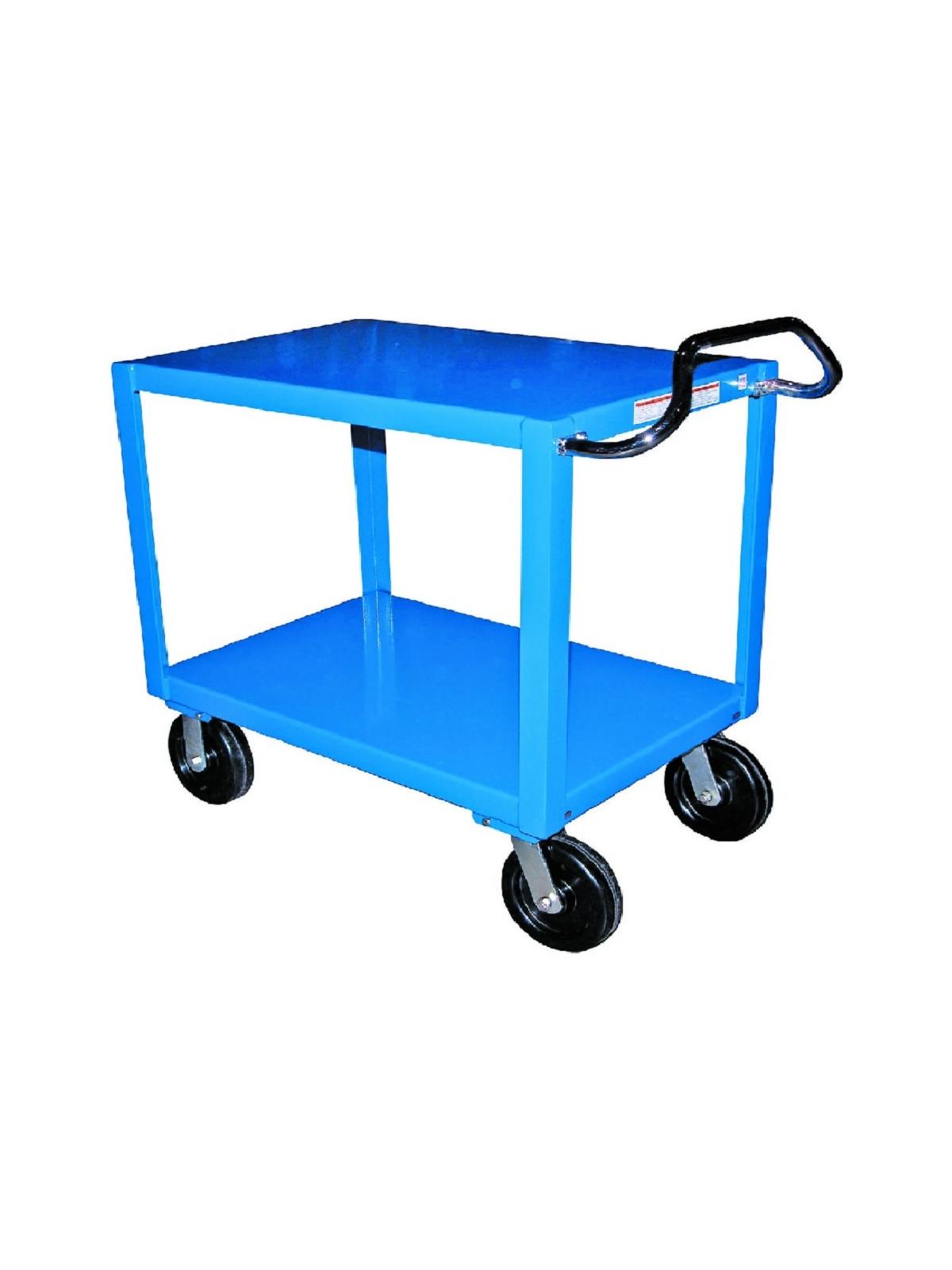 Constructed of heavy-duty steel to handle uniform loads up to 4,000 pounds. The patented ergonomic handle decreases fatigue by allowing the operator to easily maneuver the cart. Handle can be inverted for individual height comfort. Rolls on 8" x 2" casters, two (2) rigid and two (2) swivel with roller bearings. Many caster styles to choose from. Additional sizes available.  FOB Shipping Point.