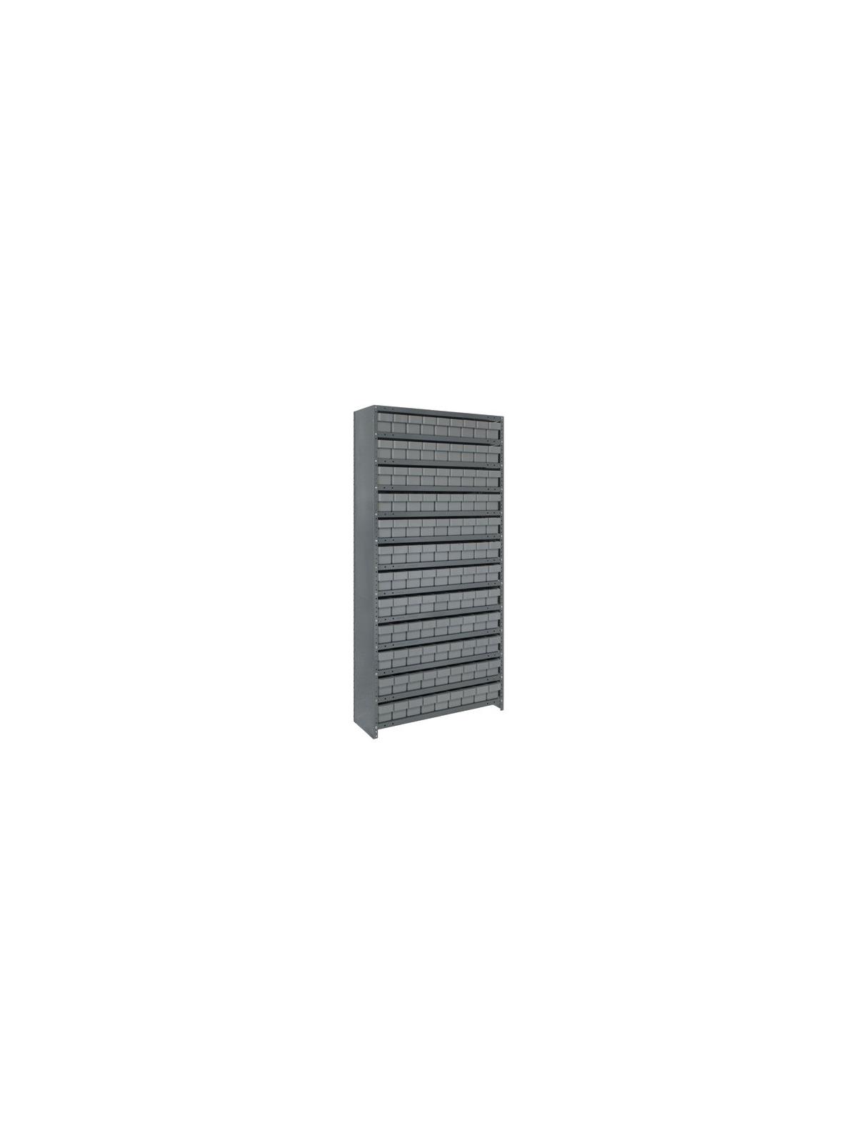 Heavy Duty Steel Shelving Units - Save time locating parts using our tough Euro Drawers with our sturdy open or closed steel shelving. 36" wide x 75" or 39" high units offer heavy-duty, high grade shelving with a 400 lb. capacity per shelf. Closed shelving provides a dust free environment for stored parts. Shelving is Gray in color. Drawers are available in Blue, Yellow, Gray or Red. FOB Shipping Point.