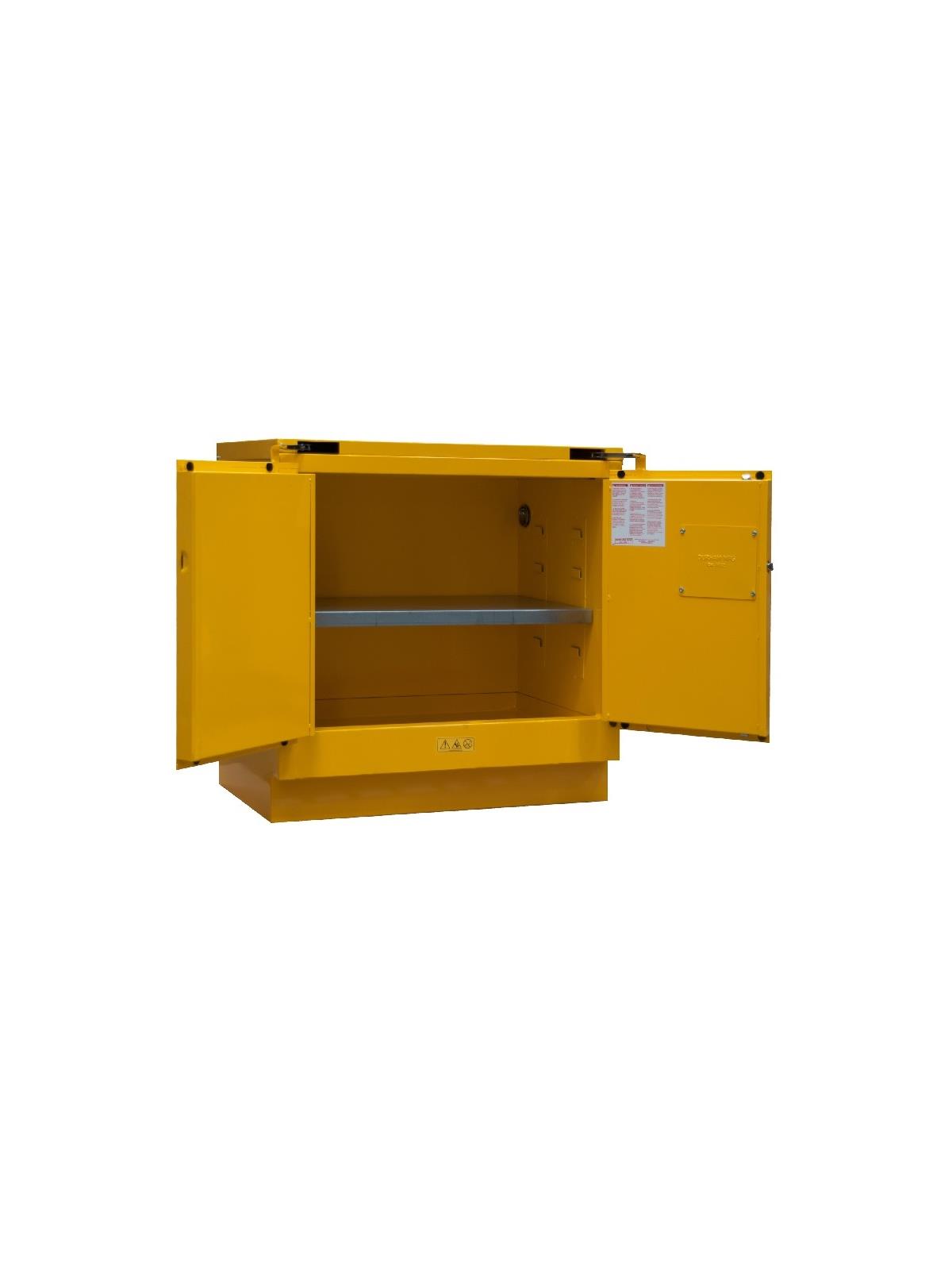Flammable Storage Cabinets are required by OSHA and UFC in commercial and industrial facilities where flammable liquids are used and stored. Cabinets feature recessed lockable paddle latch and 3 point locking systems which greatly improves security. Bunged air vents on each side of the cabinet allows for greater ventilation. Constructed of all welded Heavy Duty Steel.