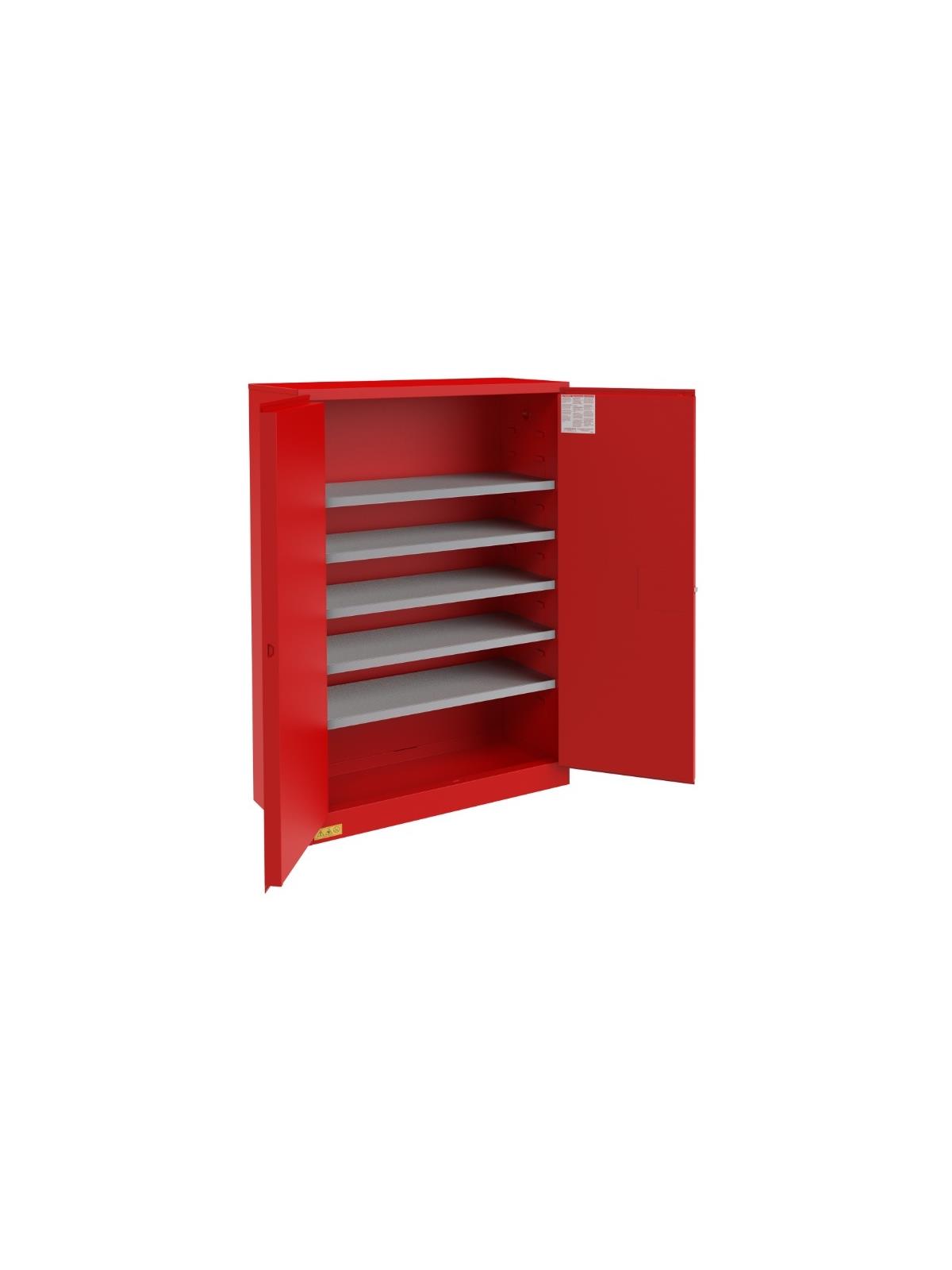 Flammable Storage Cabinets are required by OSHA and UFC in commercial and industrial facilities where flammable liquids are used and stored. Cabinets feature recessed lockable paddle latch and 3 point locking systems which greatly improves security. Bunged air vents on each side of the cabinet allows for greater ventilation. Constructed of all welded Heavy Duty Steel.