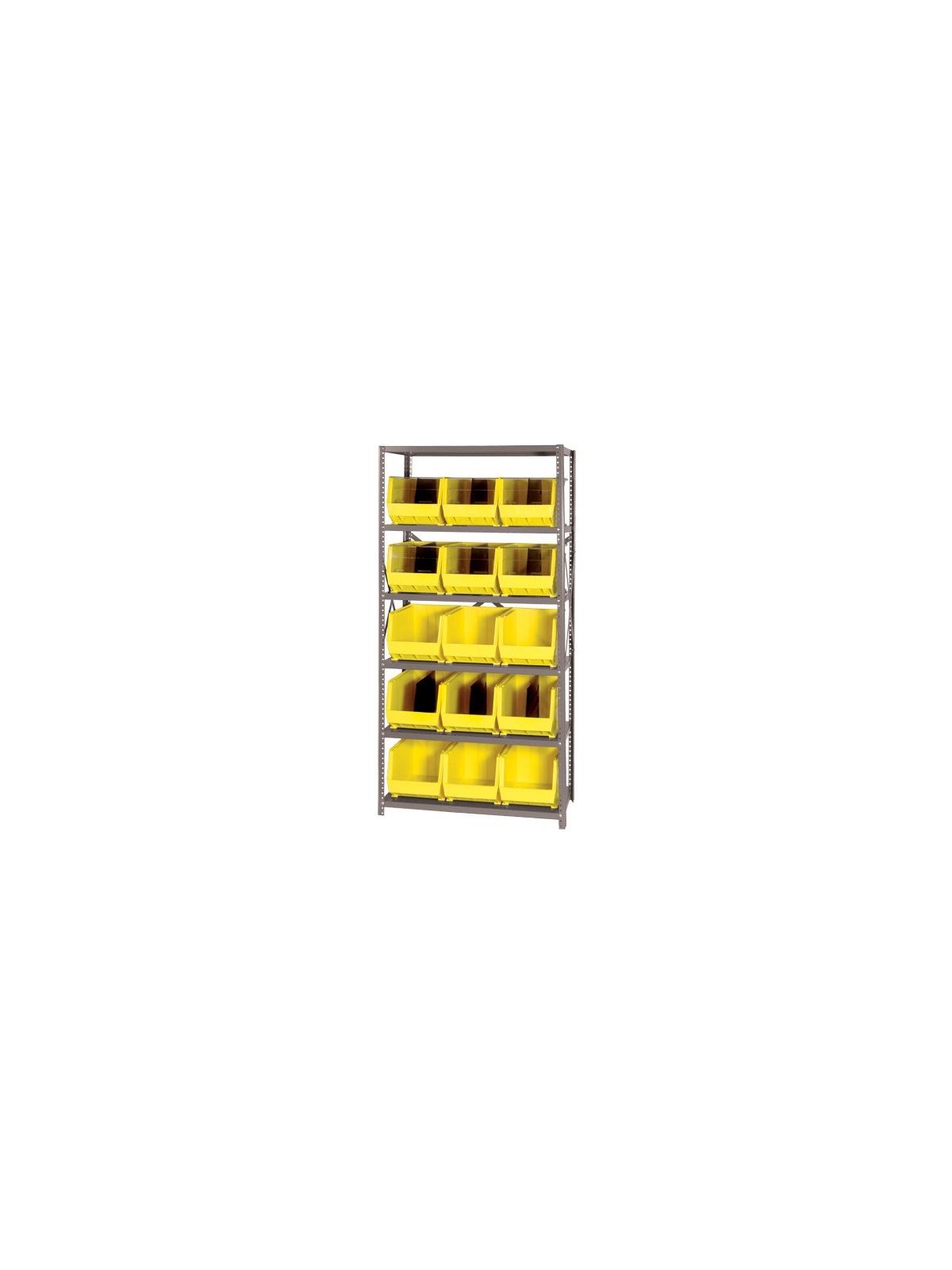 Sold complete with shelving and bins. 350 lb. capacity per shelf. Bins available in Yellow, Blue, Red, Green, Ivory and Black. FOB Shipping Point.