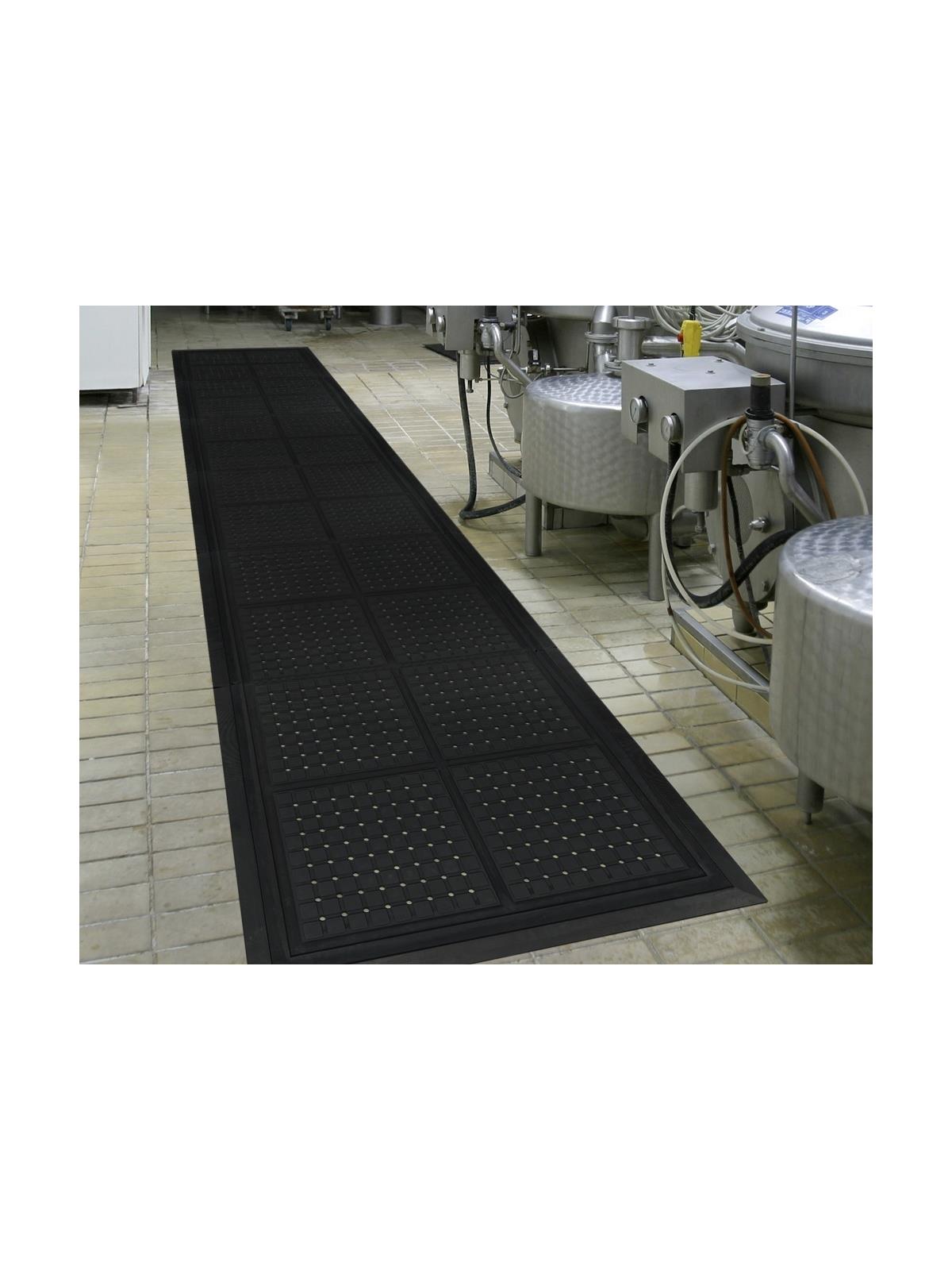 • Safe - Drainage holes allow liquid to flow through; beveled edges provide a safe transition from floor to mat and will not crack or curl.