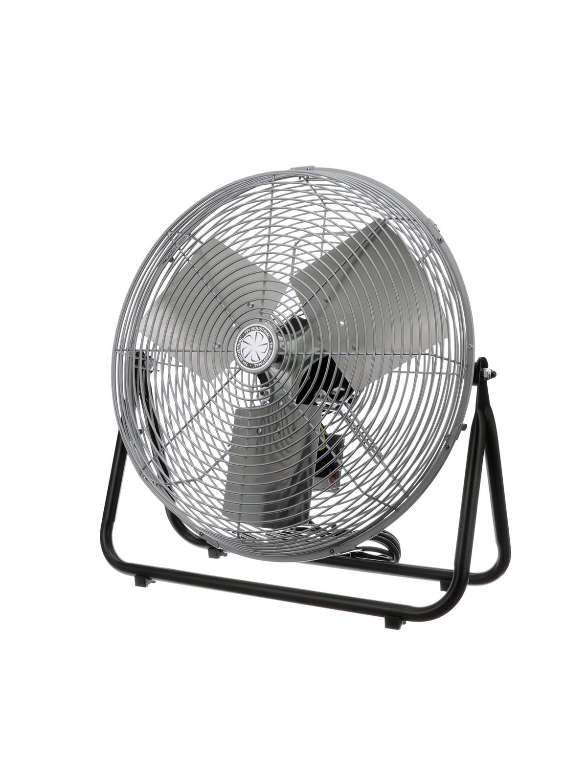 Motor is dependable 3-speed, 1 phase, 115V ball bearing totally enclosed permanently lubricated. Rotary switch. Aluminum blade has a steel hub. Safety guards are double locking chrome plated. Cord is SJT type 3 conductor, 10'L. Rolls on 5" hard rubber wheels. Meets OSHA standards. ETL C/US listed. FOB Shipping Point.