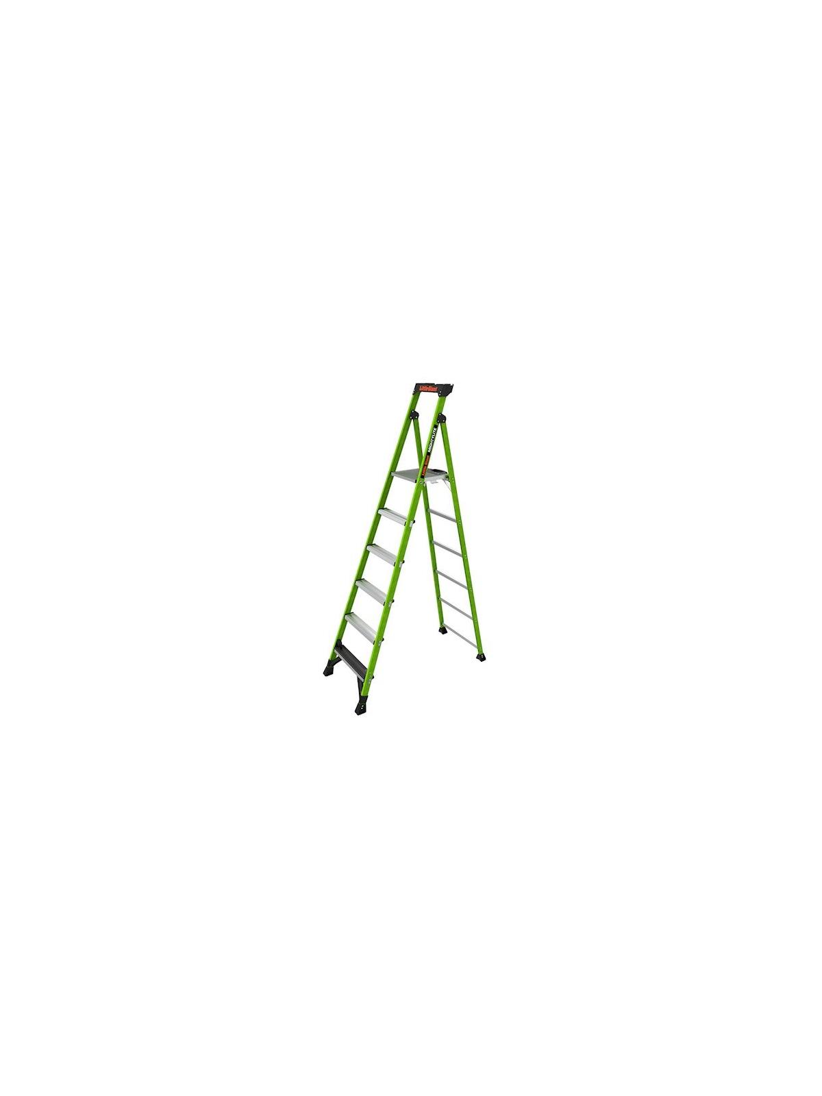 The Mightylite's patented-pending Ground Cue prevents injuries by signaling the user when it is safe to dismount the Ladder. No-pinch platform design opens easily from a slim 4" storage profile and offers wide comfortable treads on each rung, with a spacious, comfortable standing deck. Its innovative top cap allows you to keep all of your tools close at hand. Designed to address the three leading types of stepladder injuries: painful body injuries from carrying heavy equipment, dangerous falls from standing on the top rung and ankle, knee and back injuries from missing the bottom rung. Available in both type IA (300 lbs.) and type IAA (375 lbs.) ratings. FOB Shipping Point.