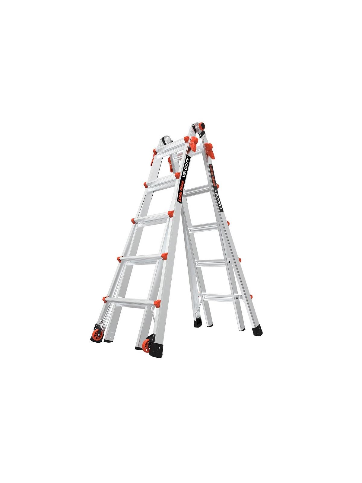 When it comes to articulating ladders, the Velocity™ by Little Giant is by far the best value for the money. Velocity™ features some of the latest patents and improvements in multi-use ladder design, Rock Lock® adjusters for fast, easy adjustment, Tip & Glide™ Wheels for easy transport (except for H15413-001), and wide rungs for improved balance, comfort and safety. Ladder works as an A-Frame, extension, staircase, 90-degree and even as trestle-and-plank scaffolding system. Use the right ladder for the right job every time and avoid 95% of all ladder related safety issues. The Velocity™ Ladder meets all OSHA & ANSI standards for the Type IA-300 lb. rating. FOB Shipping Point.