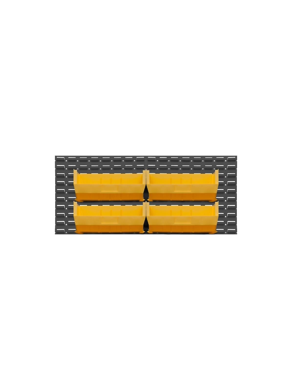 Louvers accommodate all sizes of Hook-On-Bins® (Bins are sold separately.) Tray shelves can be purchased as an accessory 1/4" holes for wall mounting - hardware not included. Durable, textured, powder coat finish. FOB Shipping Point.