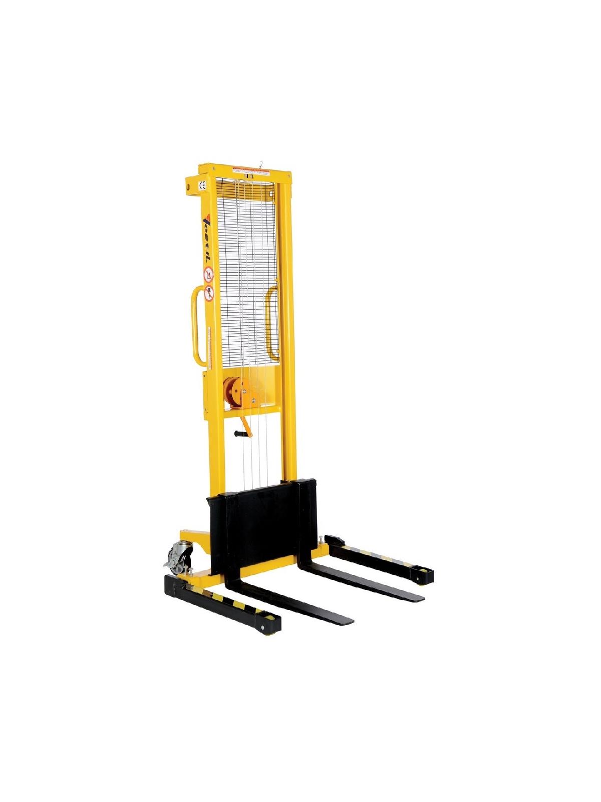 Manual Hand Winch Stackers feature a heavy duty mast and unique winch design for easier and safer lifting. Lift and lowered by hand winch and steel cable mechanism. 3/4" lift per handle revolution.
