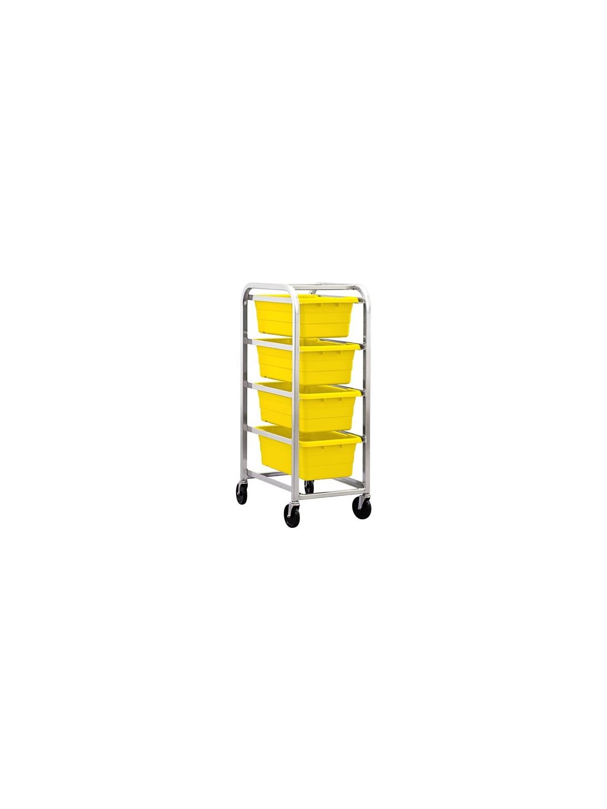 Aluminum Tub Rack transports and stores all kinds of products. Cart comes complete with tubs. Rolls on 5" rubber wheel casters. Tubs available in Gray, Blue, White, Red, or Yellow. FOB Shipping Point.