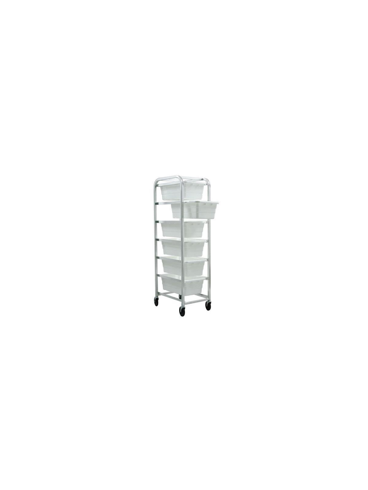 Aluminum Tub Rack transports and stores all kinds of products. Cart comes complete with tubs. Rolls on 5" rubber wheel casters. Tubs available in Gray, Blue, White, Red, or Yellow. FOB Shipping Point.