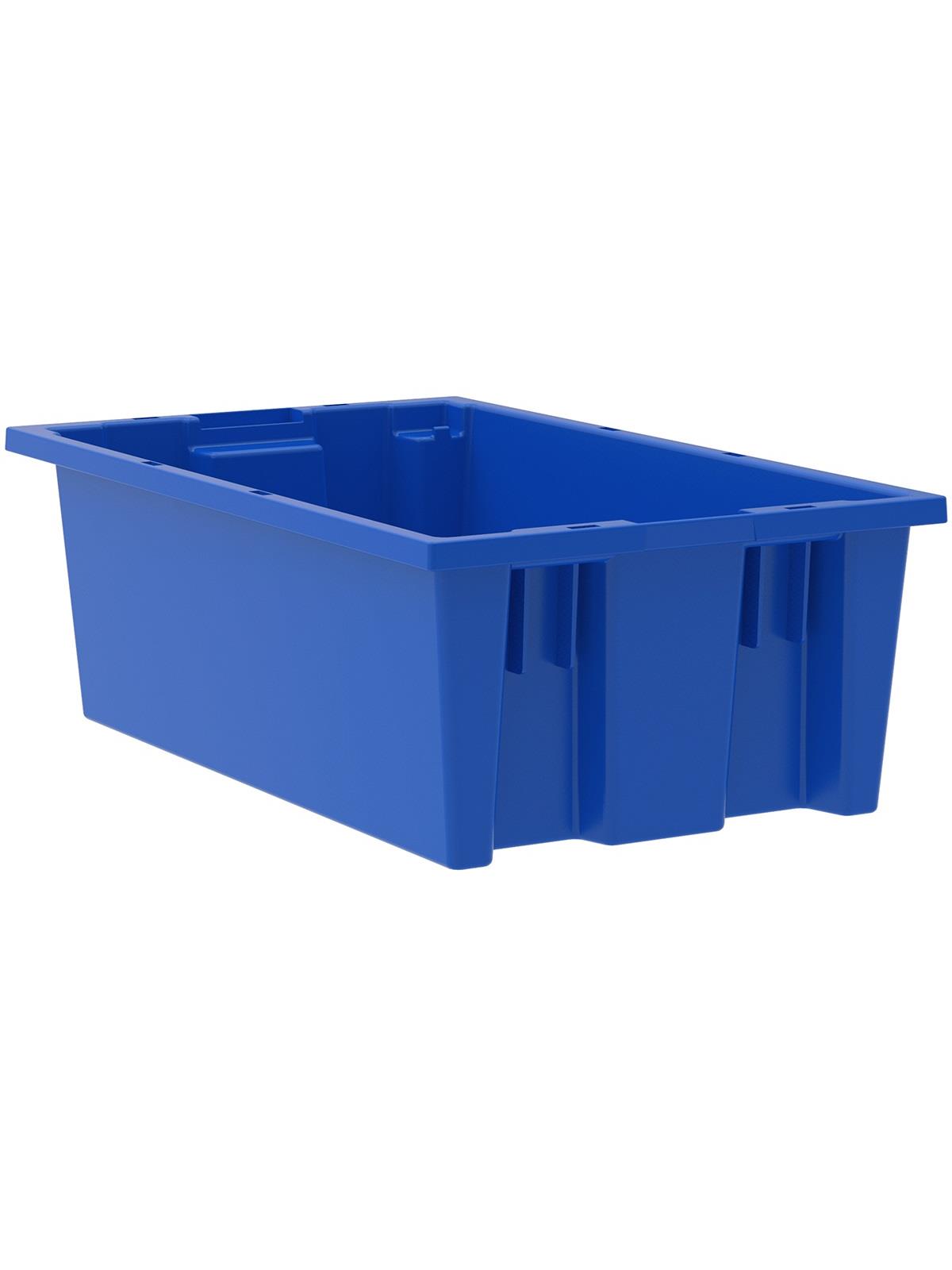 Heavy-duty construction provides a superior service life resulting in lower replacement costs than “budget-priced” totes. Smooth surfaces are easy to clean and are resistant to most solvents and chemicals. Available optional lids protect contents from dust and damage. Stackable with or without lids for shipping. When empty and without lids, totes nest for space saving storage. Available in Red, Blue, or Gray. Gray totes manufactured from FDA-approved materials. FOB Shipping Point.