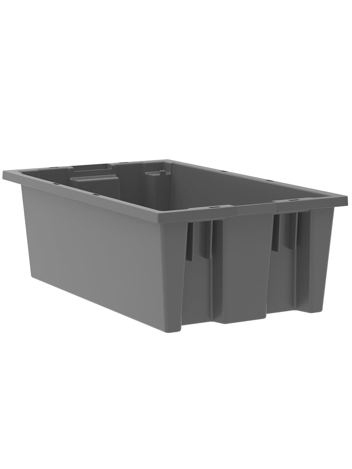 Heavy-duty construction provides a superior service life resulting in lower replacement costs than “budget-priced” totes. Smooth surfaces are easy to clean and are resistant to most solvents and chemicals. Available optional lids protect contents from dust and damage. Stackable with or without lids for shipping. When empty and without lids, totes nest for space saving storage. Available in Red, Blue, or Gray. Gray totes manufactured from FDA-approved materials. FOB Shipping Point.
