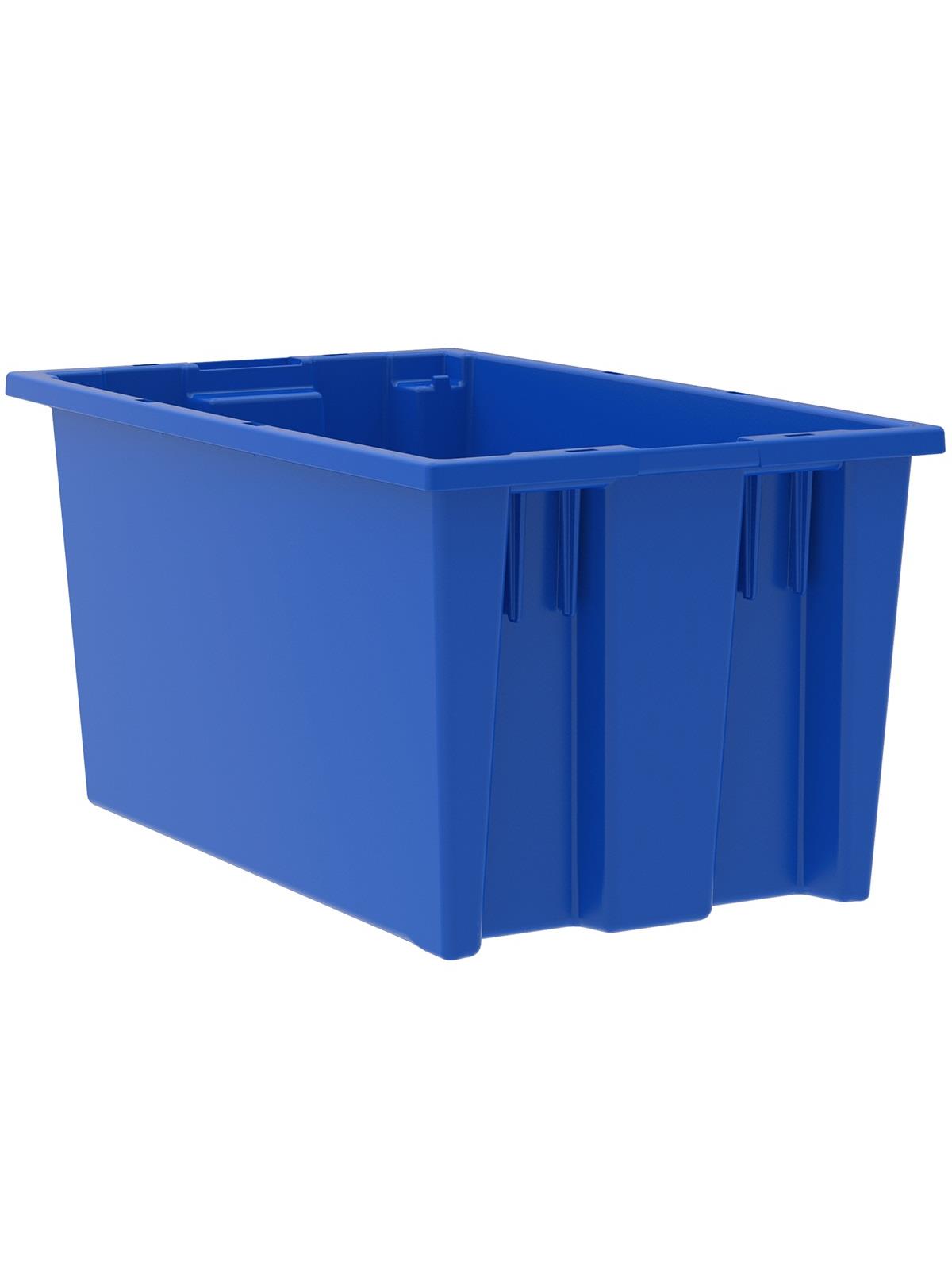 Heavy-duty construction provides a superior service life resulting in lower replacement costs than “budget-priced” totes. Smooth surfaces are easy to clean and are resistant to most solvents and chemicals. Available optional lids protect contents from dust and damage. Stackable with or without lids for shipping. When empty and without lids, totes nest for space saving storage. Available in Red, Blue, or Gray. Gray totes manufactured from FDA-approved materials. FOB Shipping Point.