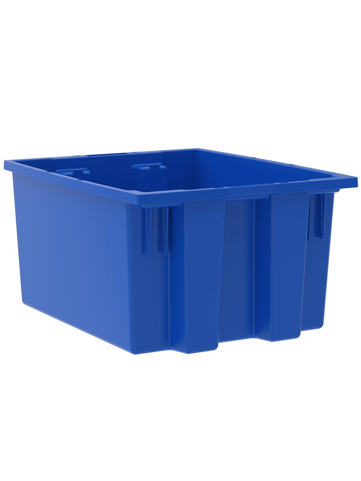 Heavy-duty construction provides a superior service life resulting in lower replacement costs than “budget-priced” totes. Smooth surfaces are easy to clean and are resistant to most solvents and chemicals. Available optional lids protect contents from dust and damage. Stackable with or without lids for shipping. When empty and without lids, totes nest for space saving storage. Available in Red, Blue, or Gray. Gray totes manufactured from FDA-approved materials. FOB Shipping Point.