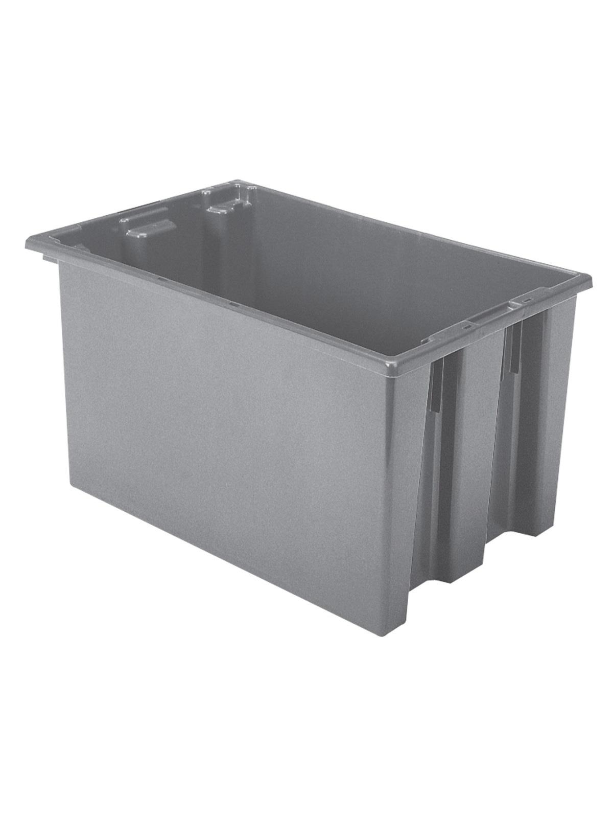 Heavy-duty construction provides a superior service life resulting in lower replacement costs than “budget-priced” totes. Smooth surfaces are easy to clean and are resistant to most solvents and chemicals. Available optional lids protect contents from dust and damage. Stackable with or without lids for shipping. When empty and without lids, totes nest for space saving storage. Available in Red, Blue, or Gray. Gray totes manufactured from FDA-approved materials. FOB Shipping Point.