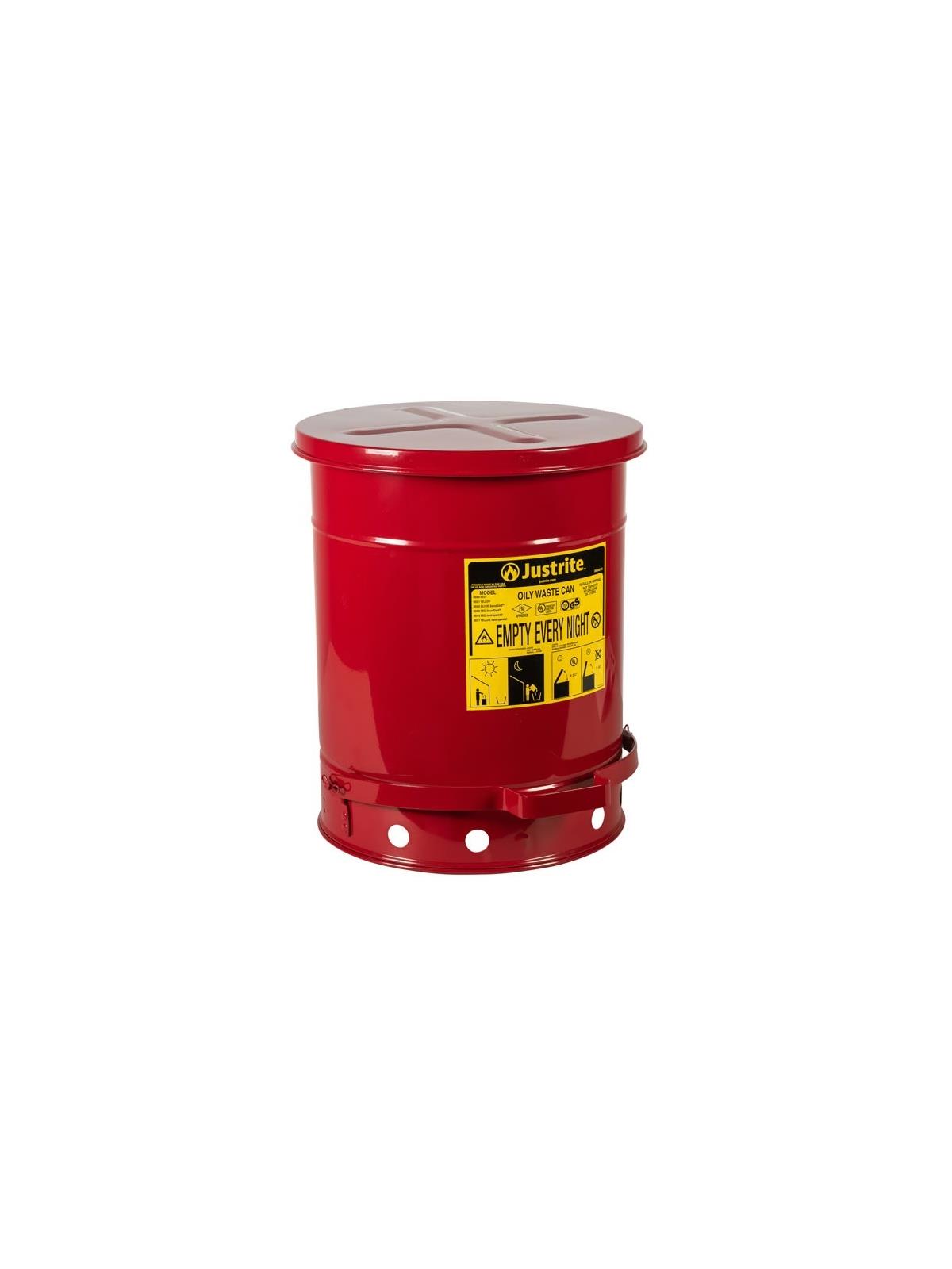 Oily Waste Cans are essential wherever solvent soaked rags and wipes are used. Durable galvanized steel body with carrying handle has a self-closing cover that stays closed when not in use to isolate contents from fire sources and limits oxygen to prevent spontaneous combustion. Raised, flow-through base encourages circulation of air to disperse heat and moisture. Silver color features SoundGard quiet-closing lid to lessen disruptive noise and provide a more comfortable working environment. OSHA compliant, FM approved. UL Listed (except for 2 gallon.) FOB Shipping Point.