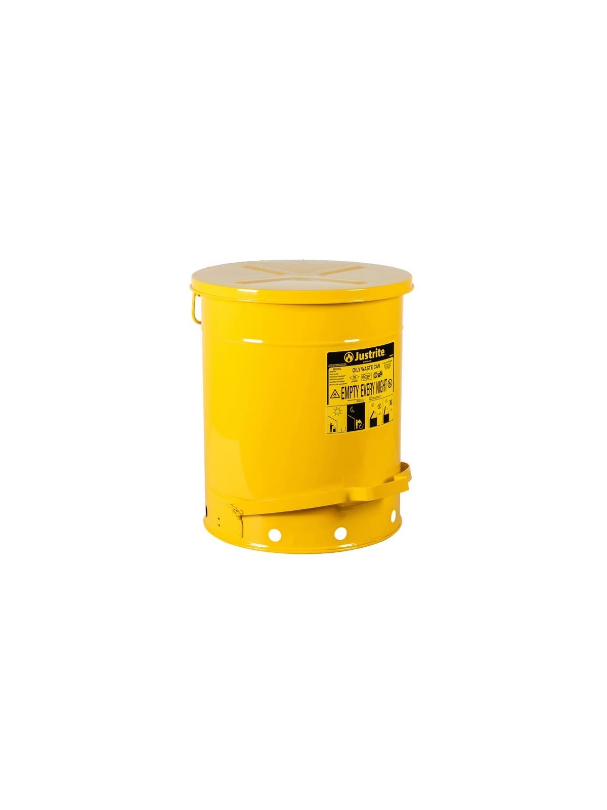 Oily Waste Cans are essential wherever solvent soaked rags and wipes are used. Durable galvanized steel body with carrying handle has a self-closing cover that stays closed when not in use to isolate contents from fire sources and limits oxygen to prevent spontaneous combustion. Raised, flow-through base encourages circulation of air to disperse heat and moisture. Silver color features SoundGard quiet-closing lid to lessen disruptive noise and provide a more comfortable working environment. OSHA compliant, FM approved. UL Listed (except for 2 gallon.) FOB Shipping Point.