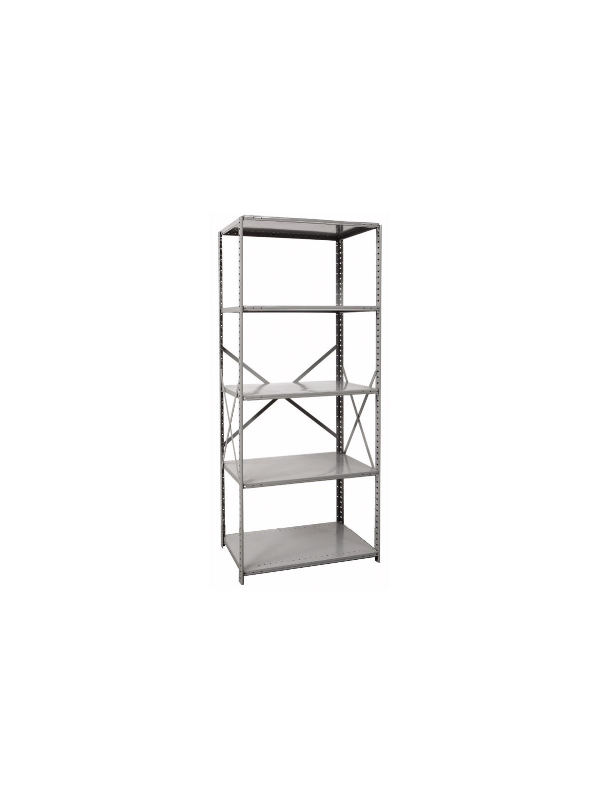 Shelves are box formed at front and back allowing high capacity storage with minimal deflection. Sides of shelves are triple flanged adding to shelf strength. Compression shelf clips improve overall unit capacity. Posts are punched to allow shelves to be adjusted top to bottom at 1-1/2” on center. Beaded front posts allow use of full shelf width and are common between adjoining units reducing assembly and installation time as well as reducing cost. Angle back posts can be bolted together when joining units side-by-side or back-to-back. Side and back sway braces eliminate units sway providing a safe storage solution. Color: Dark Gray (HG). FOB Shipping Point.
