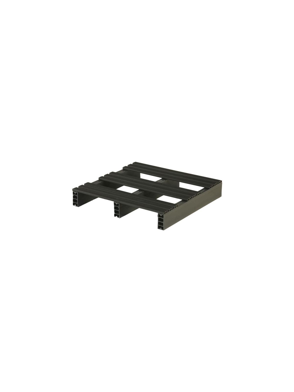 Pallets are made from recycled rigid PVC and will vary in color (shades of gray to black), weight and surface consistency.