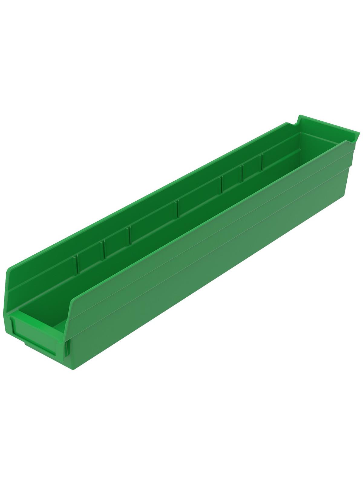 Outlasts corrugated bins - pays for themselves in reduced replacement costs. One-piece construction is waterproof and unaffected by grease or oil. Works with 12", 18" and 24" deep shelving, or vertical storage and retrieval units. Labels available. Available in 22 sizes and five colors - Red, Yellow, Blue, Green, or Semi-Clear. FOB Shipping Point.