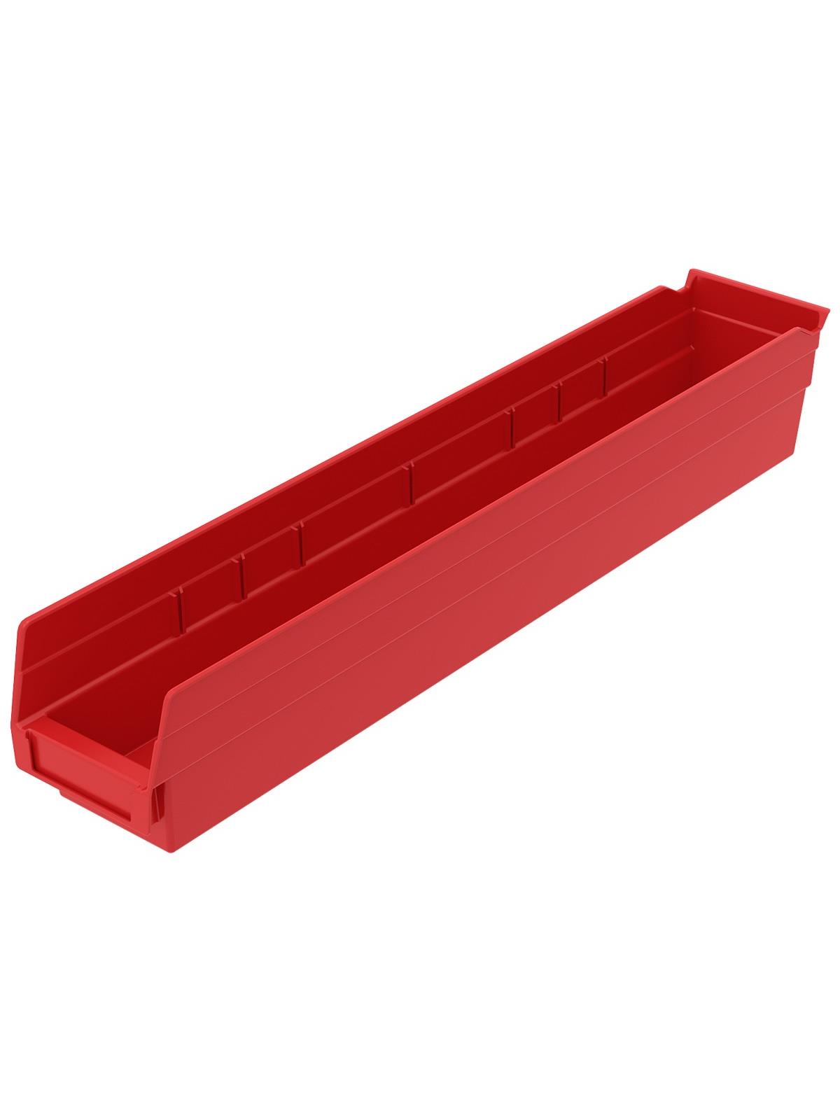 Outlasts corrugated bins - pays for themselves in reduced replacement costs. One-piece construction is waterproof and unaffected by grease or oil. Works with 12", 18" and 24" deep shelving, or vertical storage and retrieval units. Labels available. Available in 22 sizes and five colors - Red, Yellow, Blue, Green, or Semi-Clear. FOB Shipping Point.