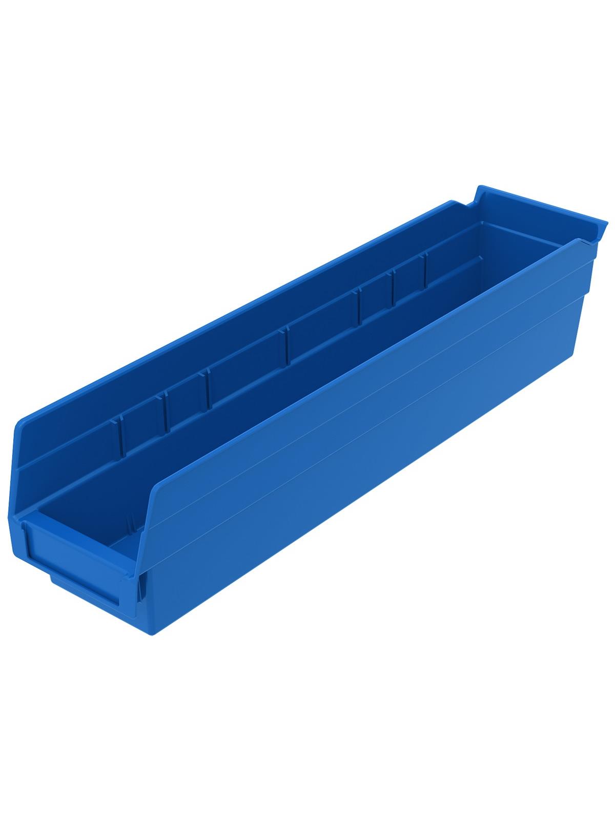 Outlasts corrugated bins - pays for themselves in reduced replacement costs. One-piece construction is waterproof and unaffected by grease or oil. Works with 12", 18" and 24" deep shelving, or vertical storage and retrieval units. Labels available. Available in 22 sizes and five colors - Red, Yellow, Blue, Green, or Semi-Clear. FOB Shipping Point.