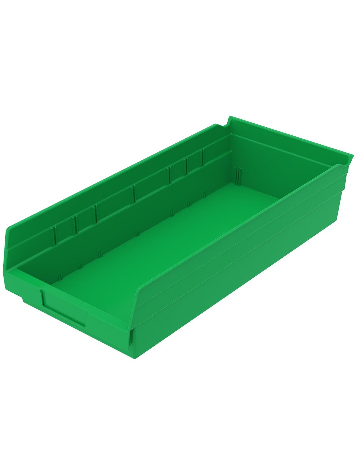 Outlasts corrugated bins - pays for themselves in reduced replacement costs. One-piece construction is waterproof and unaffected by grease or oil. Works with 12", 18" and 24" deep shelving, or vertical storage and retrieval units. Labels available. Available in 22 sizes and five colors - Red, Yellow, Blue, Green, or Semi-Clear. FOB Shipping Point.