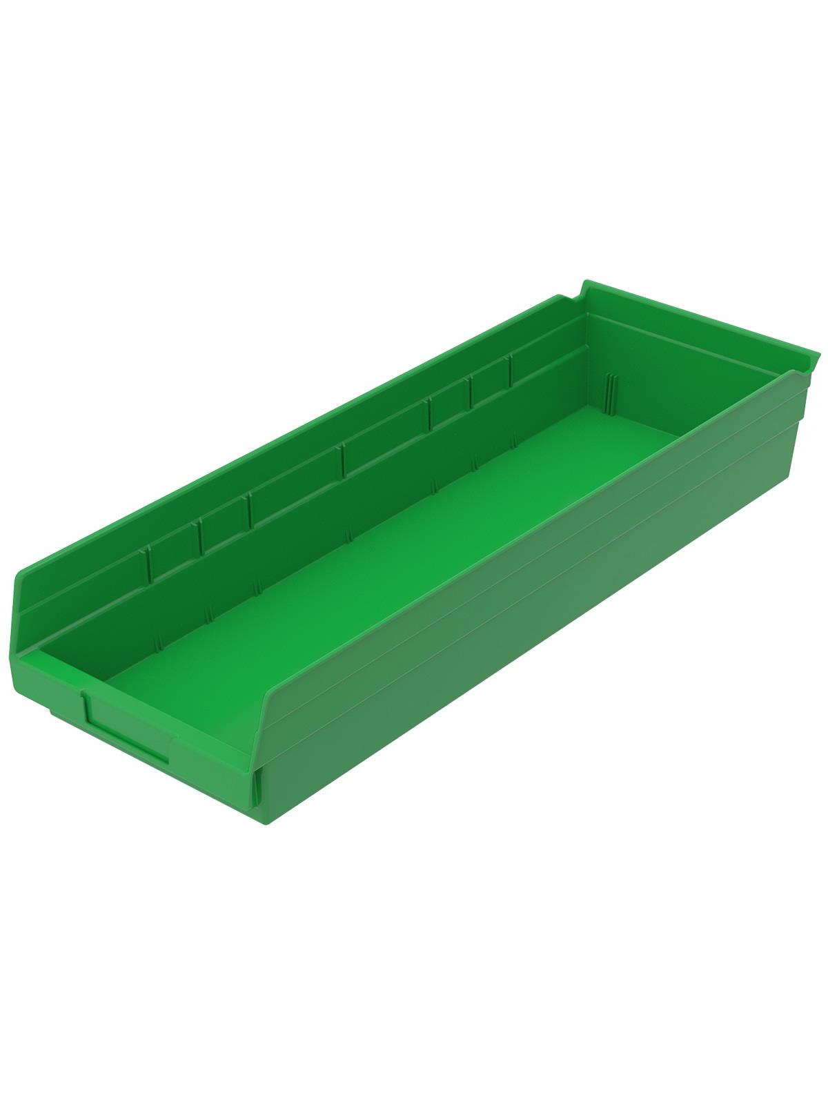 Outlasts corrugated bins - pays for themselves in reduced replacement costs. One-piece construction is waterproof and unaffected by grease or oil. Works with 12", 18" and 24" deep shelving, or vertical storage and retrieval units. Labels available. Available in 22 sizes and five colors - Red, Yellow, Blue, Green, or Semi-Clear. FOB Shipping Point.
